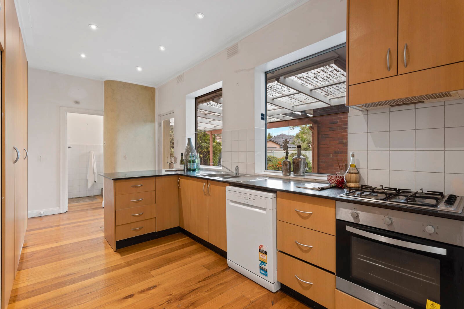 Styled with a stone and prestige appliance kitchen, a gently upgraded vintage main bathroom, sympathetic cabinetry and polished boards, this accommodating home has extra space in a garage-mancave, more entertaining on a curvaceous covered patio …and endless garden space to grow a family. At the very least, this substantial late-period home has scope to provide a solid rental until it’s time to build the future!
