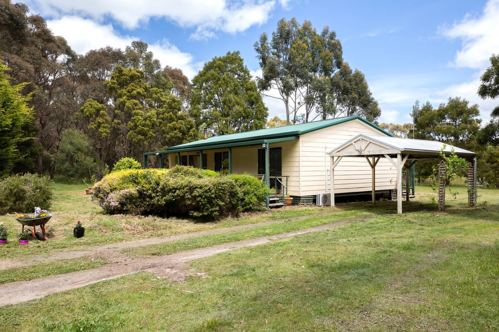 Located in Enfield on approx’ 7644m2 is this neat Bond home comprising 3 bedrooms with BIR’s, a bathroom with shower & bath and a living room with a bay window looking out over a lovely garden setting. The kitchen has an electric stove and creature comforts are well catered for with a slow combustion wood heater and a split system in the lounge and the master bedroom. The home has front and back verandas providing shade and an outdoor entertainment area/fernery is a great place to unwind with a drink on these warmer evenings or just unwind and watch the kids and animals play. Parking is a breeze with a carport and a separate garage and wood shed. Town water and a 6000 gallon water tank provide plenty of water for the garden and NBN is connected. Experience country living at its best in a great little community just 20 minutes to Ballarat. Arrange your inspection today as this property represents tremendous value and won’t last
