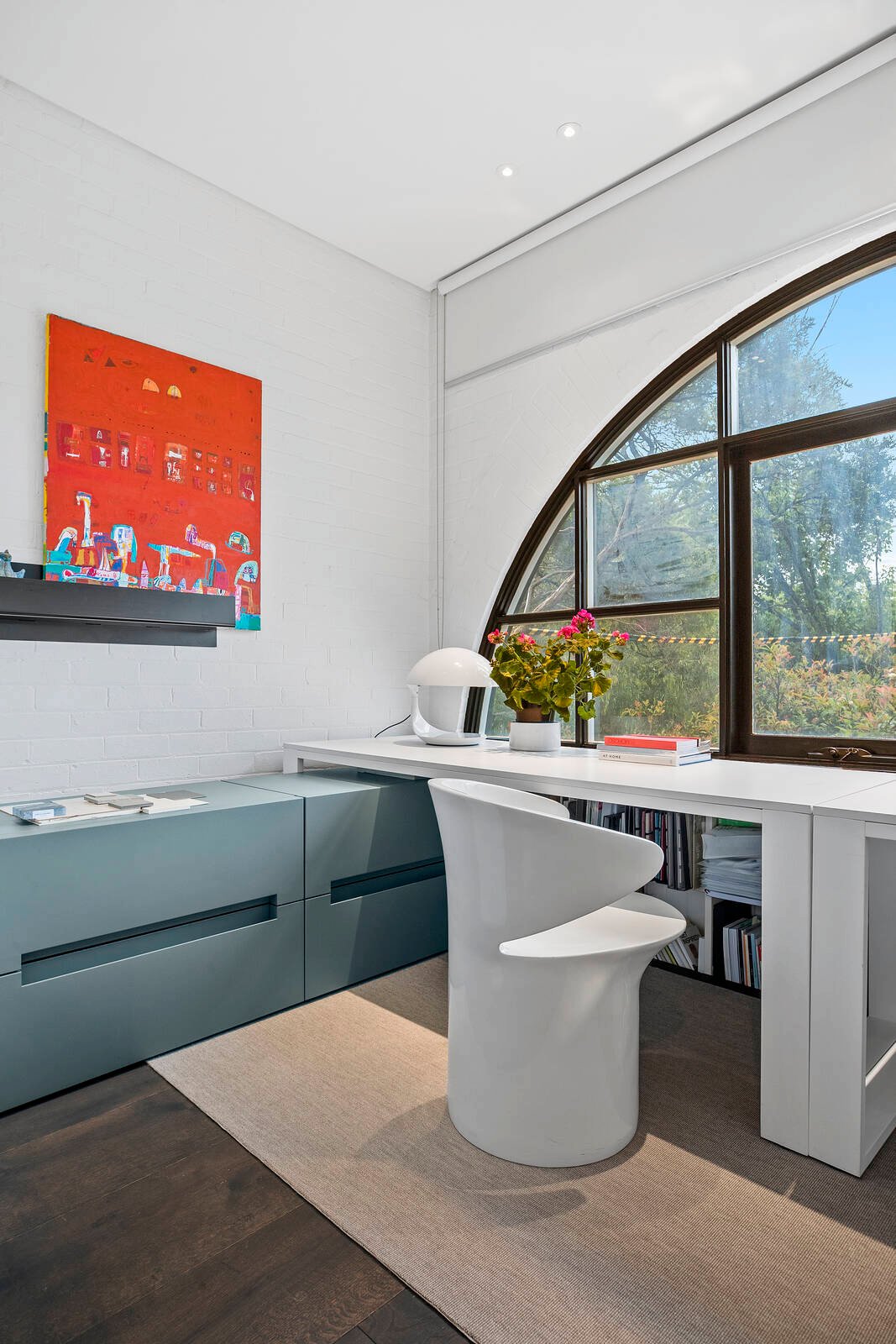 Having undergone a comprehensive contemporary transformation by its interior architect owner, a chic and minimalist design aesthetic underpins the marvellous modern-day appeal of this dual-level apartment. Within a boutique Art Deco block accessed via tree-lined Stawell St, form meets function to complement the oversized dimensions of its heritage (114sqm approx.), with a sliding door revealing spacious living and dining areas – the latter comforted by a marble-surround gas fireplace. Exquisitely appointed with porcelain surfaces, Barazza appliances and a Neff dishwasher, the fully integrated kitchen boasts ingeniously concealed storage options, a common theme throughout the home also found in the deluxe bathroom (Omvivo basin and Zuchetti fixtures/fittings). Including a master (wall-to-wall built-ins) preceding a home office welcoming light and a leafy backdrop, secluded upstairs bedroom (attic access), sun-kissed rear landing/terrace, hydronic heating, Euro laundry and undercover parking, it is perfectly positioned to enjoy the vibrant lifestyle offerings of Prahran, Windsor, Armadale and Malvern.