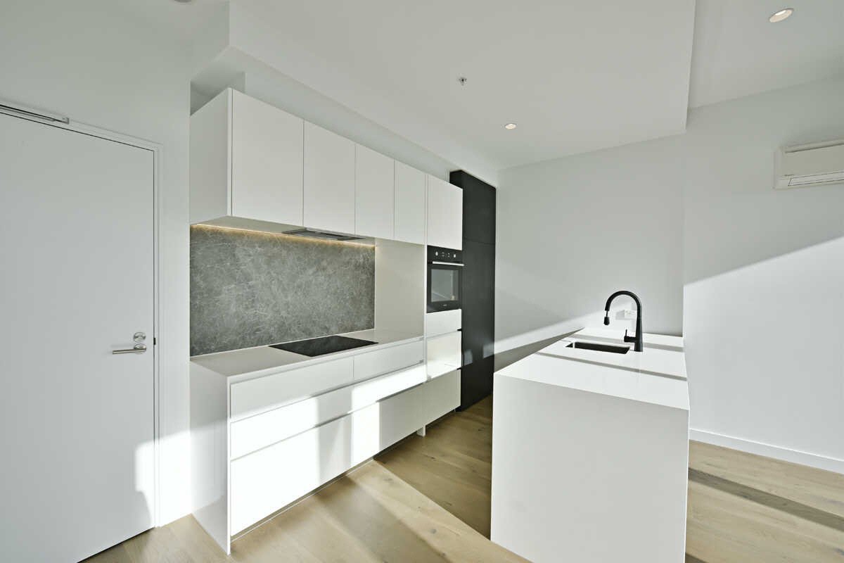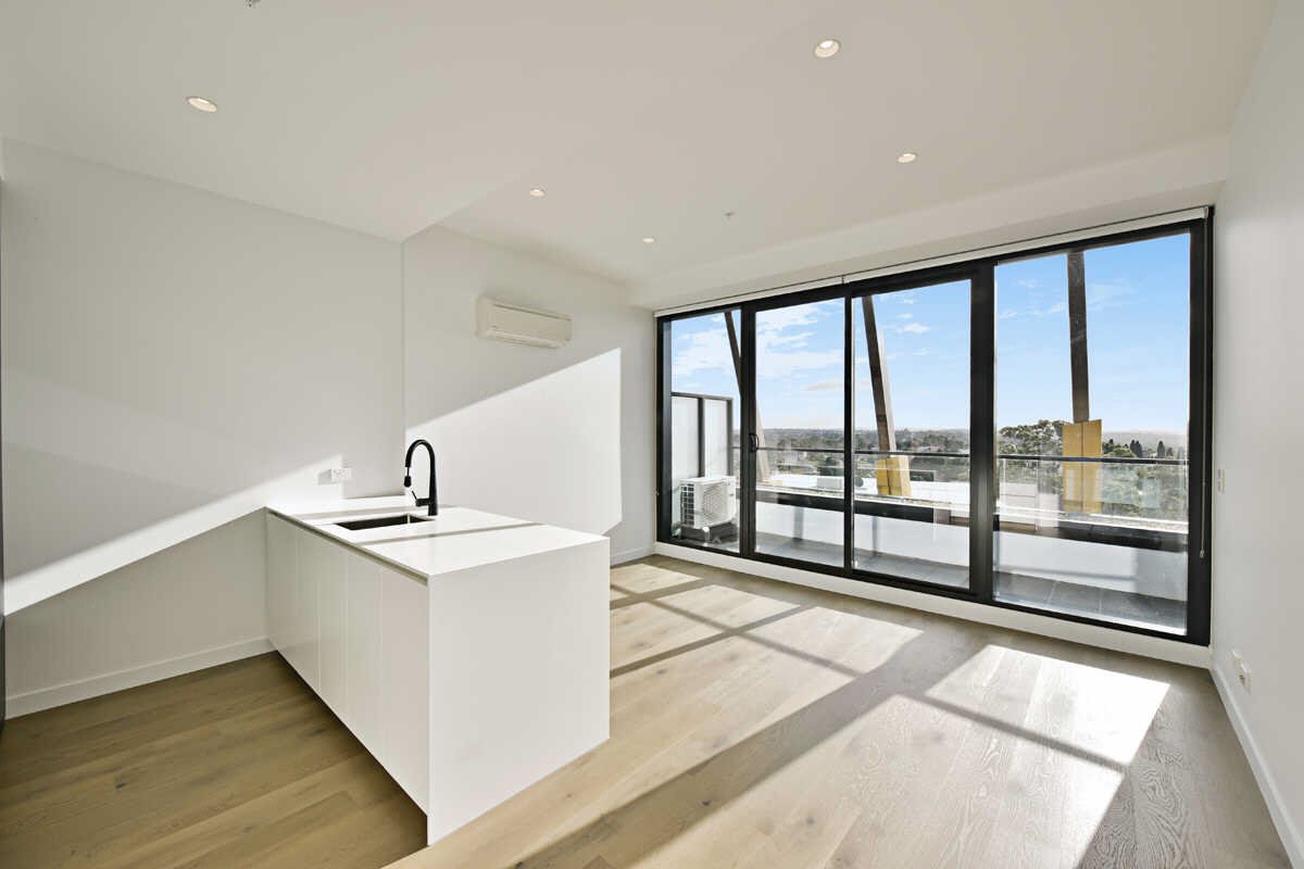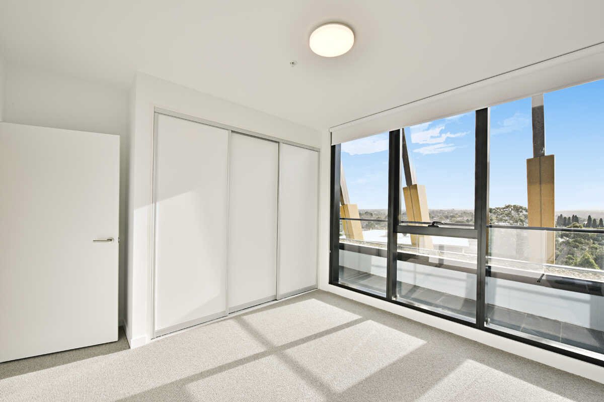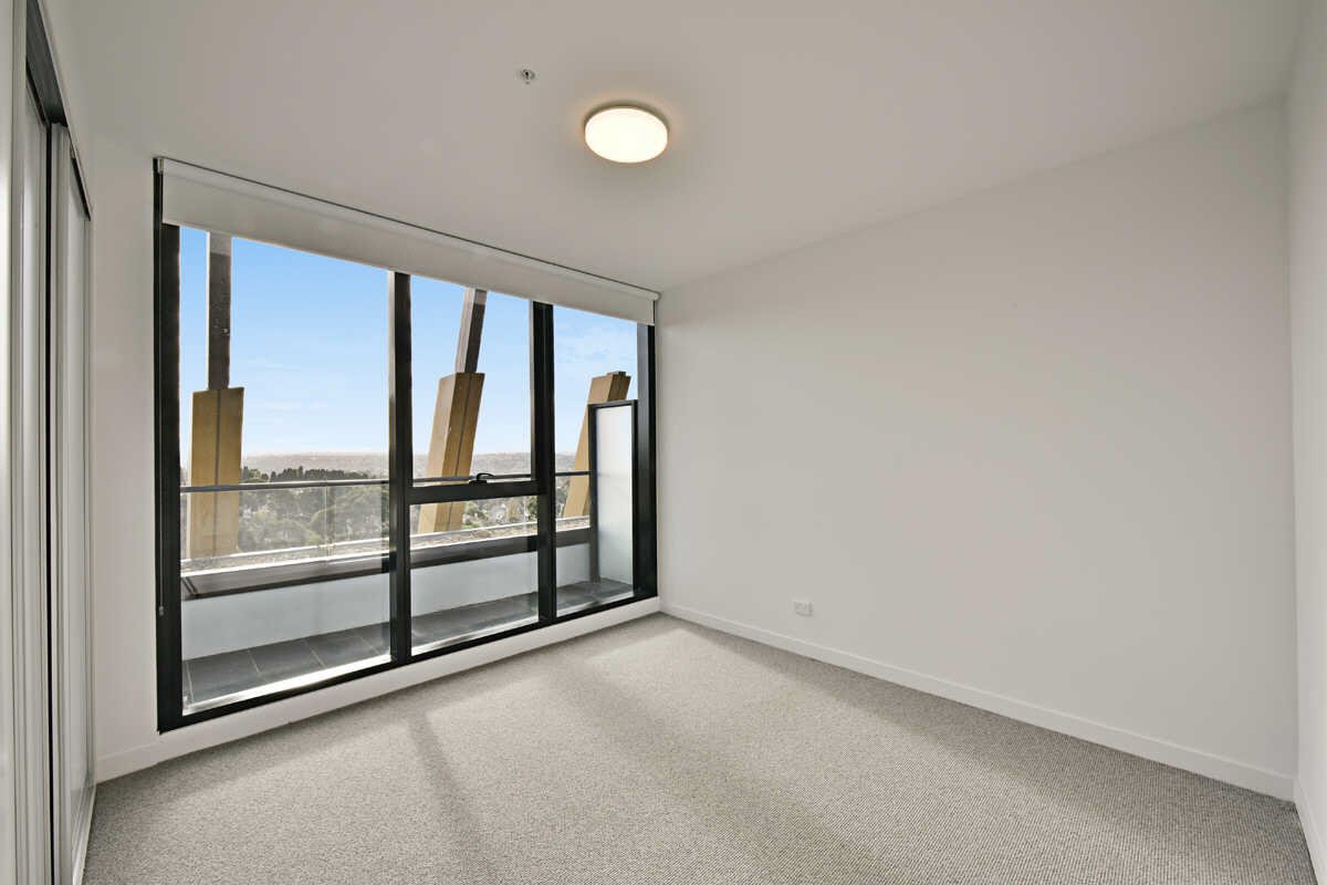 With sweeping views across the City skyline and the Dandenong Ranges, this one bedroom apartment boasts high ceilings, floor to ceiling windows, plush carpet in the bedroom, a kitchen with stone benchtops, stainless steel appliances and an induction cooktop, a European laundry, split system air conditioning in the living room, roller blinds and secure intercom access.