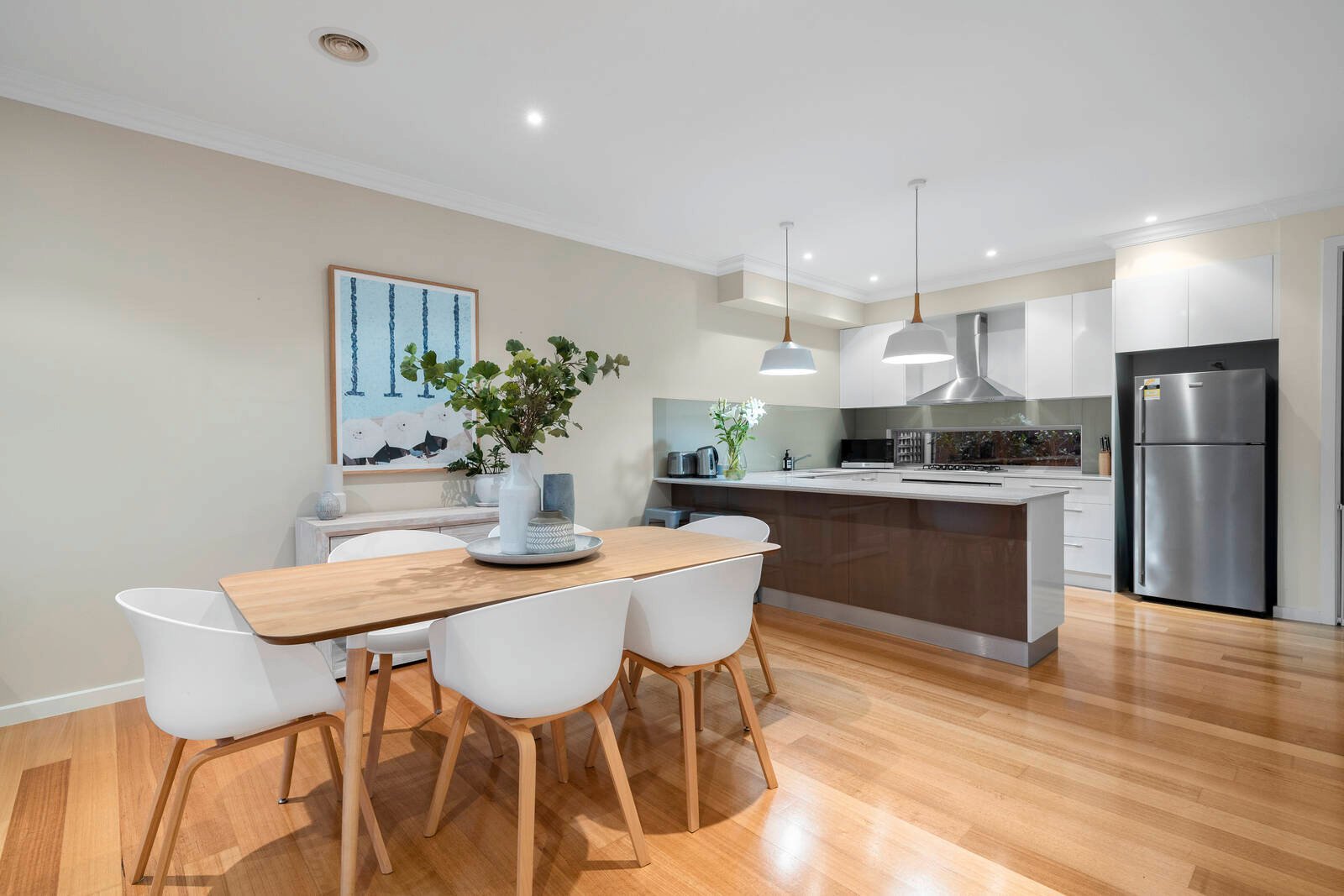 Sleek stone benchtops and quality stainless steel appliances star in the gourmet kitchen while two full bathrooms, a guest powder room and up to four queen-sized bedrooms - or three and a peacefully positioned home office - take care of families of all sizes. The vast master bedroom is a parents’ retreat in every sense and includes a walk-in robe and ensuite while among the home’s standout features are ducted heating, multiple split systems, ducted vacuum, video intercom, alarm, substantial storage, laundry with access to a sunny drying terrace, water tank and double garage behind secure gates. The home’s low maintenance yet generous landscaped gardens create an idyllic sanctuary to enjoy with loved ones - there is also a new pergola, just in time for summer barbecues.