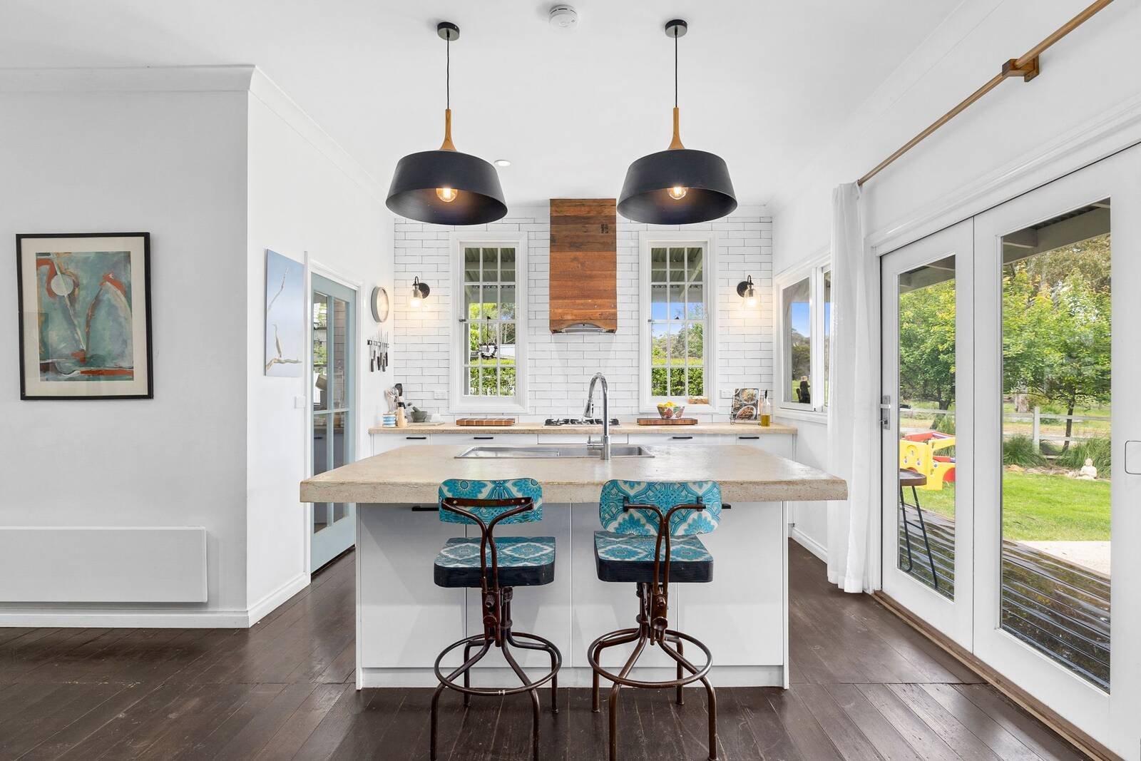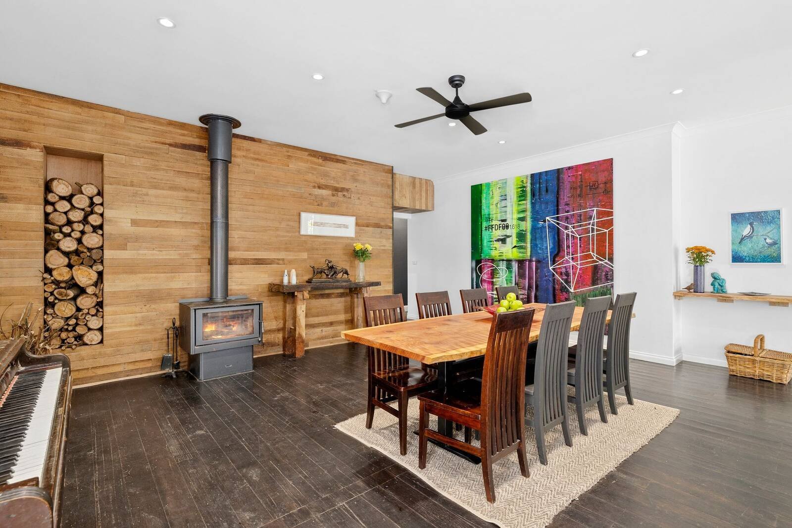 The heart of this home is the striking open plan kitchen and living area with natural wood heater and spectacular wooden feature wall, this area certainly has been designed for all year-round comfort. The kitchen features Concrete bench tops, gas cooktop, oven, dishwasher & walk-in pantry with ample storage. Seamlessly Flowing on from the open plan kitchen, is an additional living area with an abundance of natural light and breathtaking views of the property.