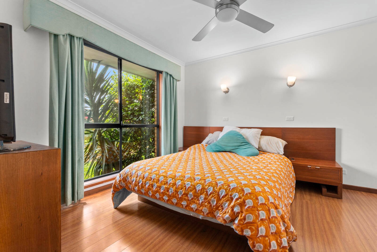 The living area which leads into the study area is carpeted with windows along two sides. The kitchen and dining is open plan with the kitchen comprising of a five burner gas stove top, oven plus grill, dishwasher and good pantry space.