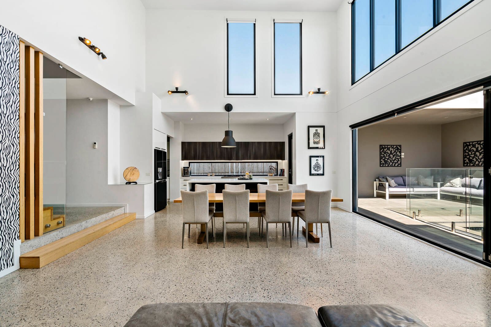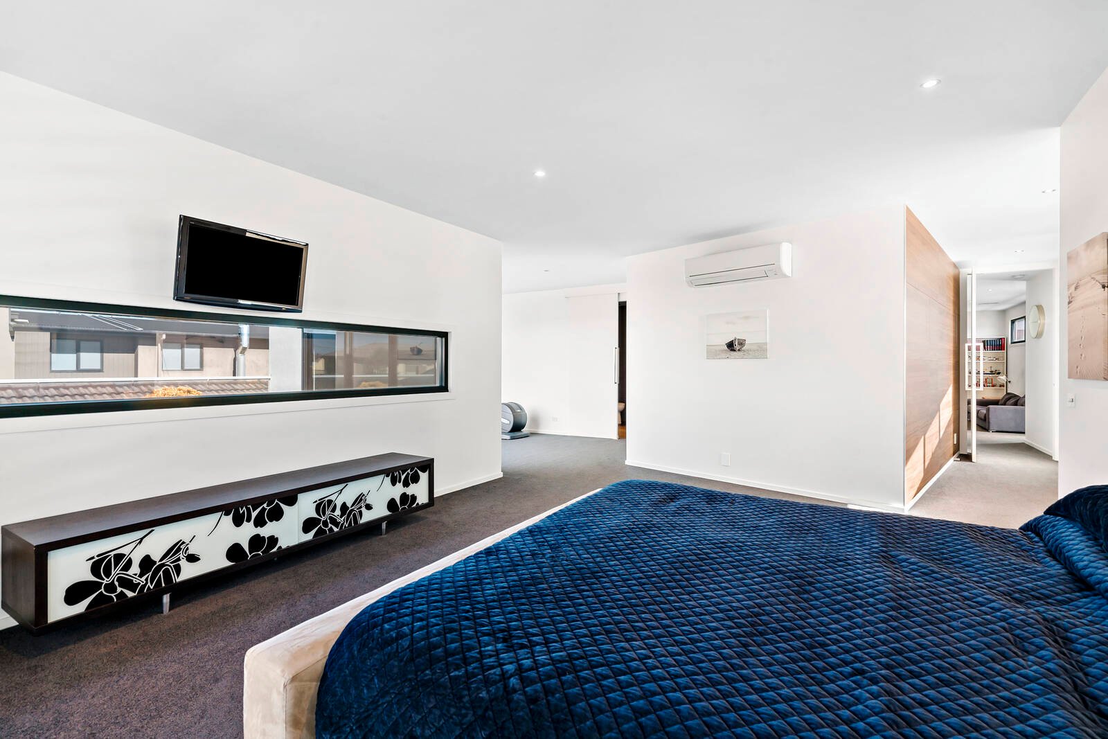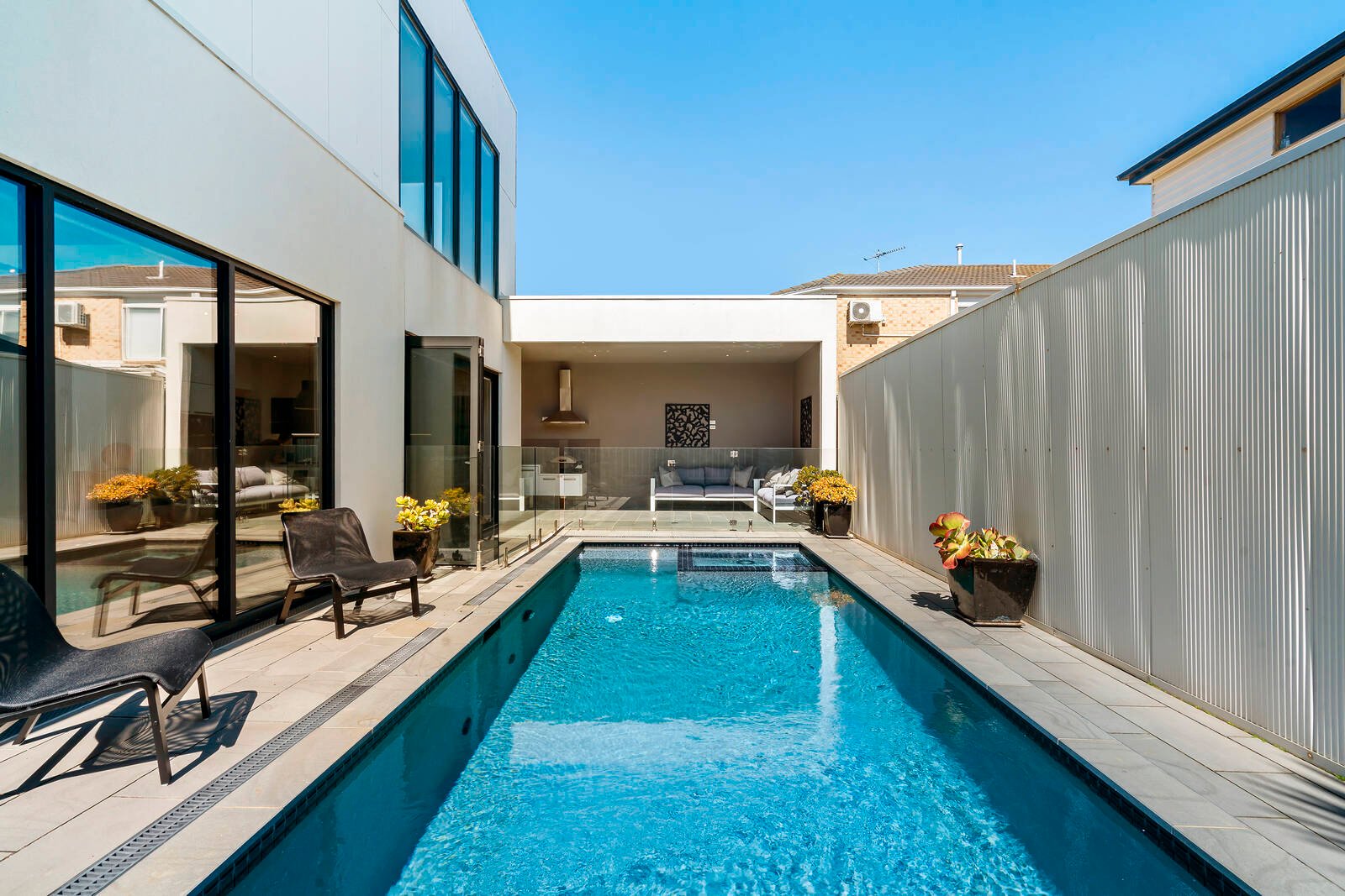 Making a striking first impression, this contemporary architect designed three-bedroom + study family home delivers a dream lifestyle steps from the pristine white sand and crystal blue water of Port Phillip Bay. Set under soaring ceilings and expanses of glass fitted with automatic blinds, sprawling open plan living and dining is immersed in beautiful northern sunshine, overlooked by a first-class entertainer’s kitchen with butler's pantry, stainless steel appliances, waterfall edge stone benchtops and window splash back. Stacking bi-fold doors create seamless flow to the glistening heated swimming pool and spa, while you can host guests with effortless ease under the covered alfresco area. Quietly tucked away,two spacious downstairs bedrooms with robes share a stylish dual-access bathroom, while upstairs discover a fabulous media room and sumptuous main retreat with water vistas, dressing room, lavish ensuite and private living area opening to a balcony deck where you’ll love to relax, soak up the sun and smell the sea breeze. Well-appointed with polished concrete floors, a clever bar nook, ducted heating, split-system cooling, double glazed windows, downstairs powder room, extensive storage, multiple water tanks and double remote garage behind an automatic gate. Positioned a short stroll to cafes, shops and train, plus moments from schools, parks and sporting reserves – location, lifestyle and easy living awaits with this magnificent coastal haven.
