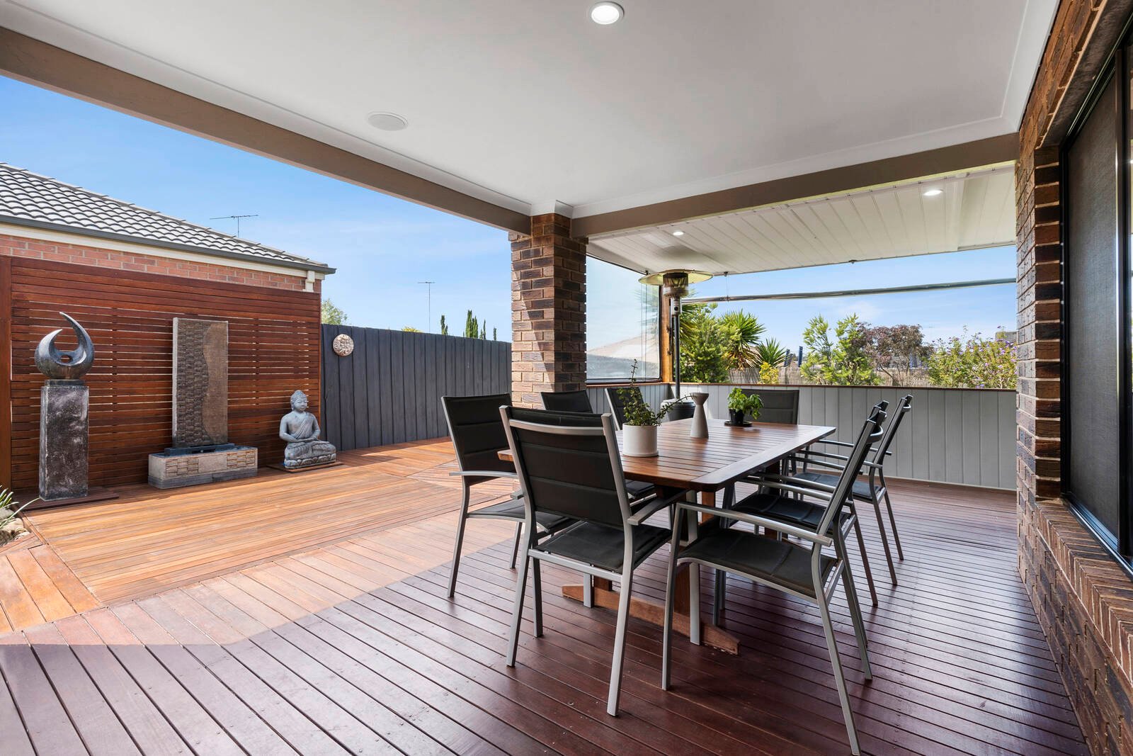 Glass sliders lead out from the living area to a beautiful undercover alfresco complete with outdoor blinds, providing a sheltered and private space to relax or entertain all year round. The al fresco extends out to an open deck with a calming water feature offering a tranquil space to enjoy the sun whilst you watch the kids or pets at play in the well maintained backyard featuring established trees and outdoor storage shed.