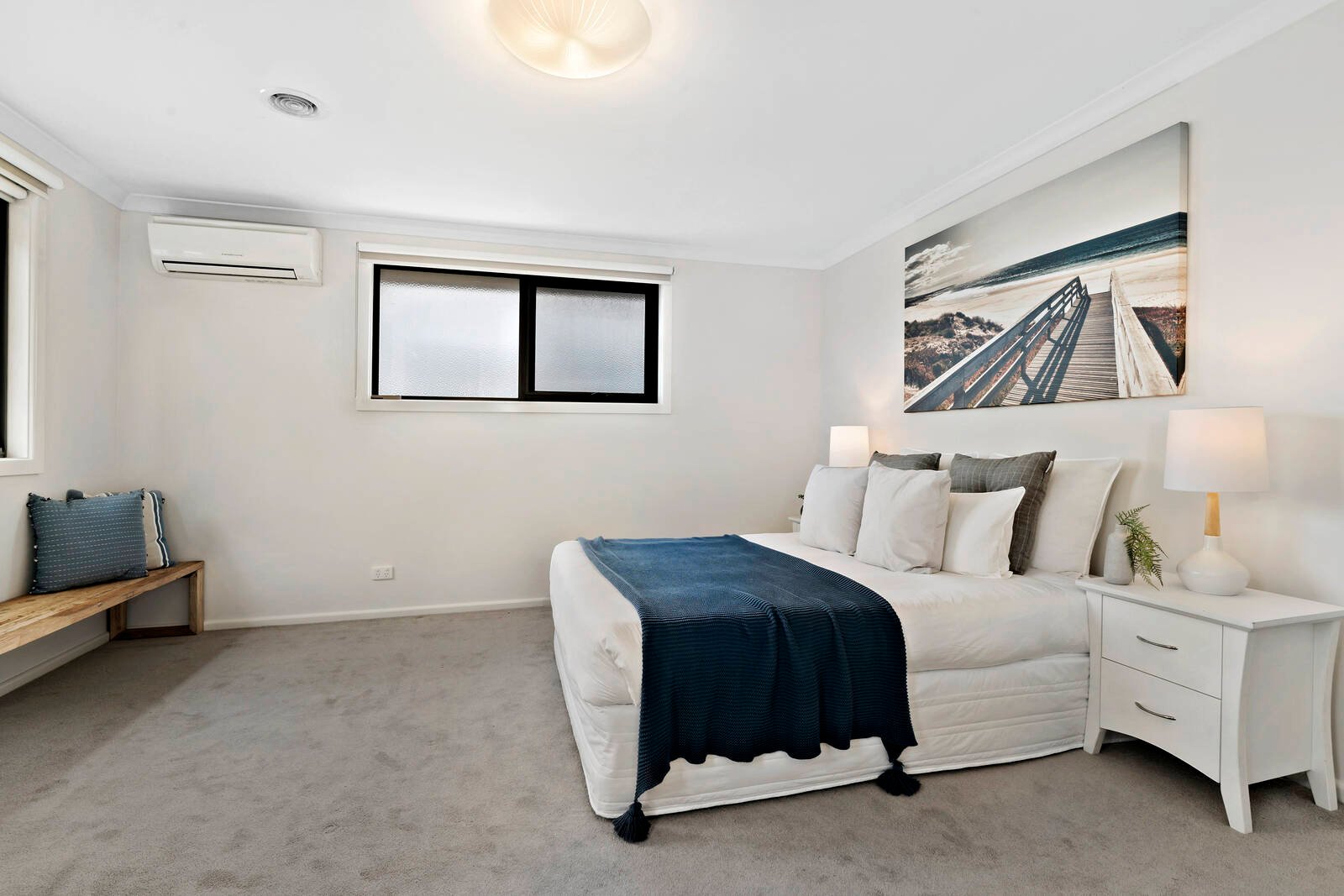 This modern family home is proudly positioned amongst lush tropical gardens, with its own street frontage and behind a secure auto fence. Upon entry beyond the stunning facade, you will notice generous proportions, high ceilings and a free flowing floorplan. The formal living zone at the front of the property invites relaxation and the wide hallway leads you through to a huge open plan dining zone. Effortlessly entertain all year round with a sliding glass door leading you out to an undercover decked alfresco area and grassed backyard. The premium stone kitchen at the heart of the home will impress with freestanding 900ml Smeg oven, Bosch dishwasher, breakfast bar and walk in pantry. The feature hardwood staircase leads to a hotel style master suite with plush carpet, split system, WIR and sparkling ensuite. The two additional queen sized bedrooms feature BIR's and split systems. The family bathroom features a bath and separate WC. Benefit from a dedicated study/home office at the front of the home. Features include split system heat and cool, roller blinds, double garage, full sized laundry, powder room, linen press, under stair storage , water tank and no body corporate. Positioned just steps to Carrum Beach, Patterson River, Train station and shops.