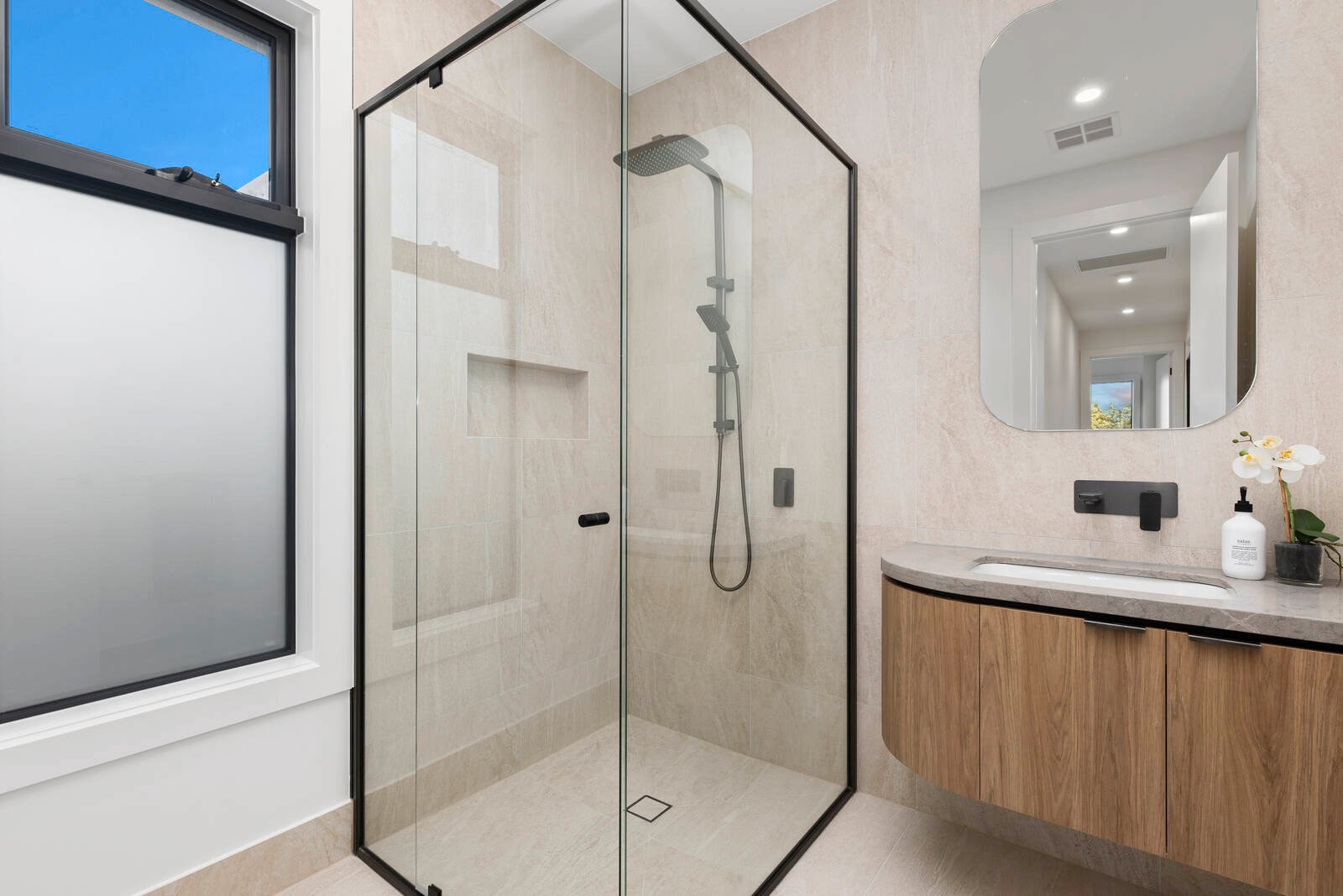 With ceilings rising to 3m for the living zones (and 2.7m for the bedroom level), the home rises to the height of quality with climate-control zoned upstairs and down, the security of Samsung keyless entry, video-intercom and an alarm, Even the outdoors are appointed to prestige standards with a water-saving 2700L tank and two car parking including an auto-garage.