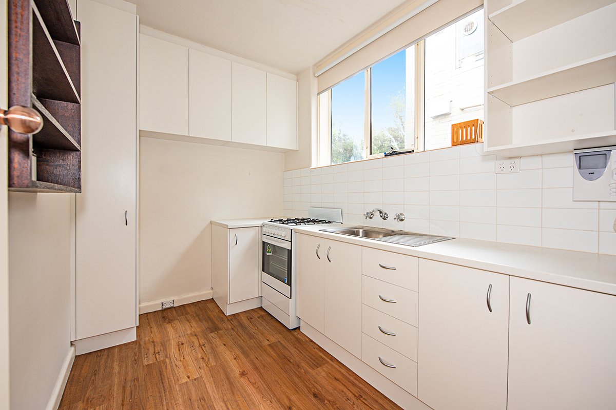 Every room filled with natural light, the apartment’s immaculate interior comprises one bedroom with built in robes, and a stylish central bathroom with bath. Add to this a separate lounge, a contemporary separate kitchen with a gas cooktop, oven and ample cupboard space.