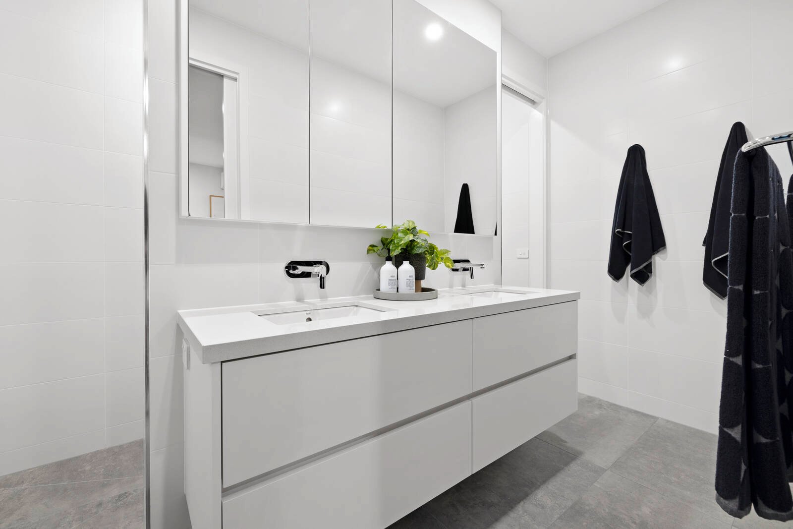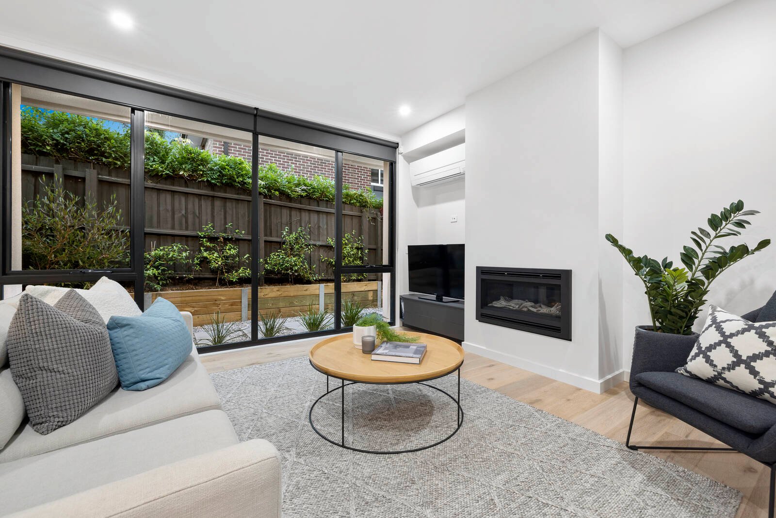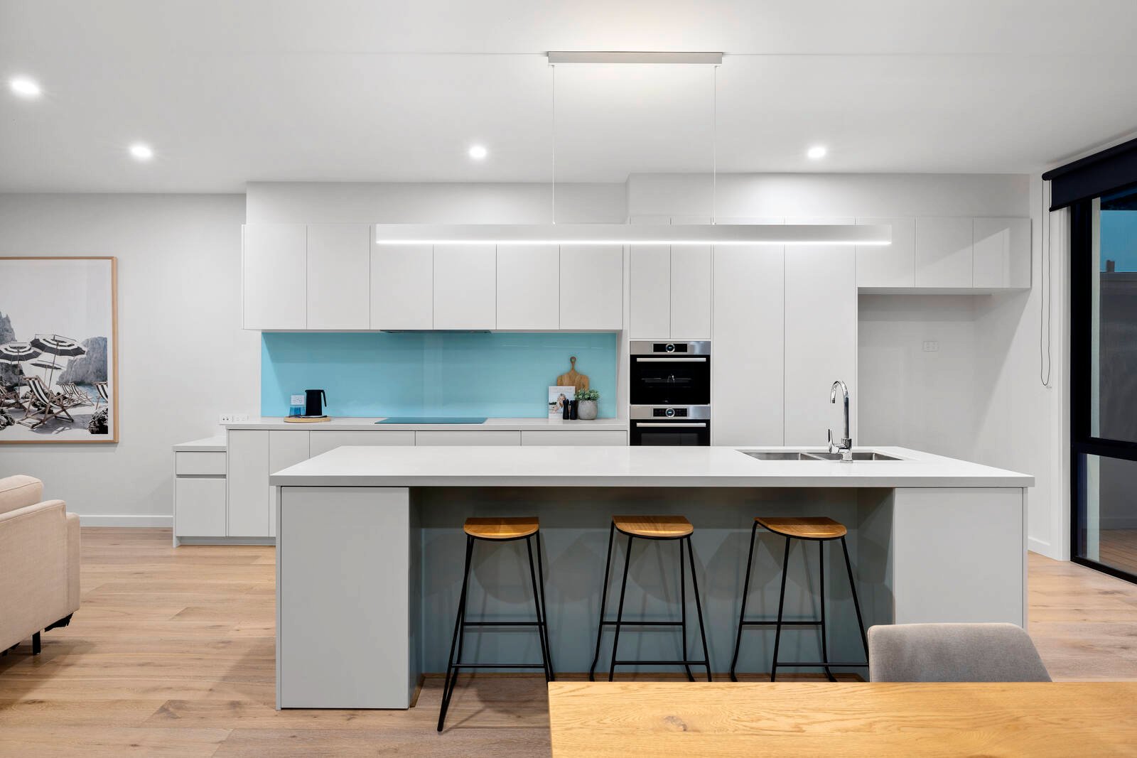 Offering an abundance of storage with a fitted storeroom, plus double or triple built-in robes for each bedroom, the home is styled with sheer and block-out window-furnishings and semi-commercial double-glazing in the latest black-aluminium frames. Secured by an alarm and video-intercom and wrapped by well-conceived outdoor space, the home is nestled in auto-watered gardens on three sides, with parking for at least two -cars (including an auto-garage) and a deep balcony on high.