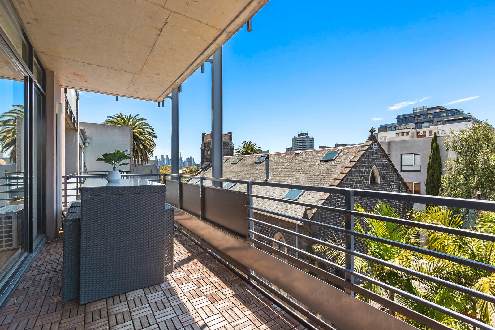 A Stylishly renovated apartment with impressive spaces including a generous single bedroom. Enjoy leafy views to the CBD skyline in this peaceful, private rear apartment in secure Alameda at Fitzroy Street’s boutique “Paris end”.