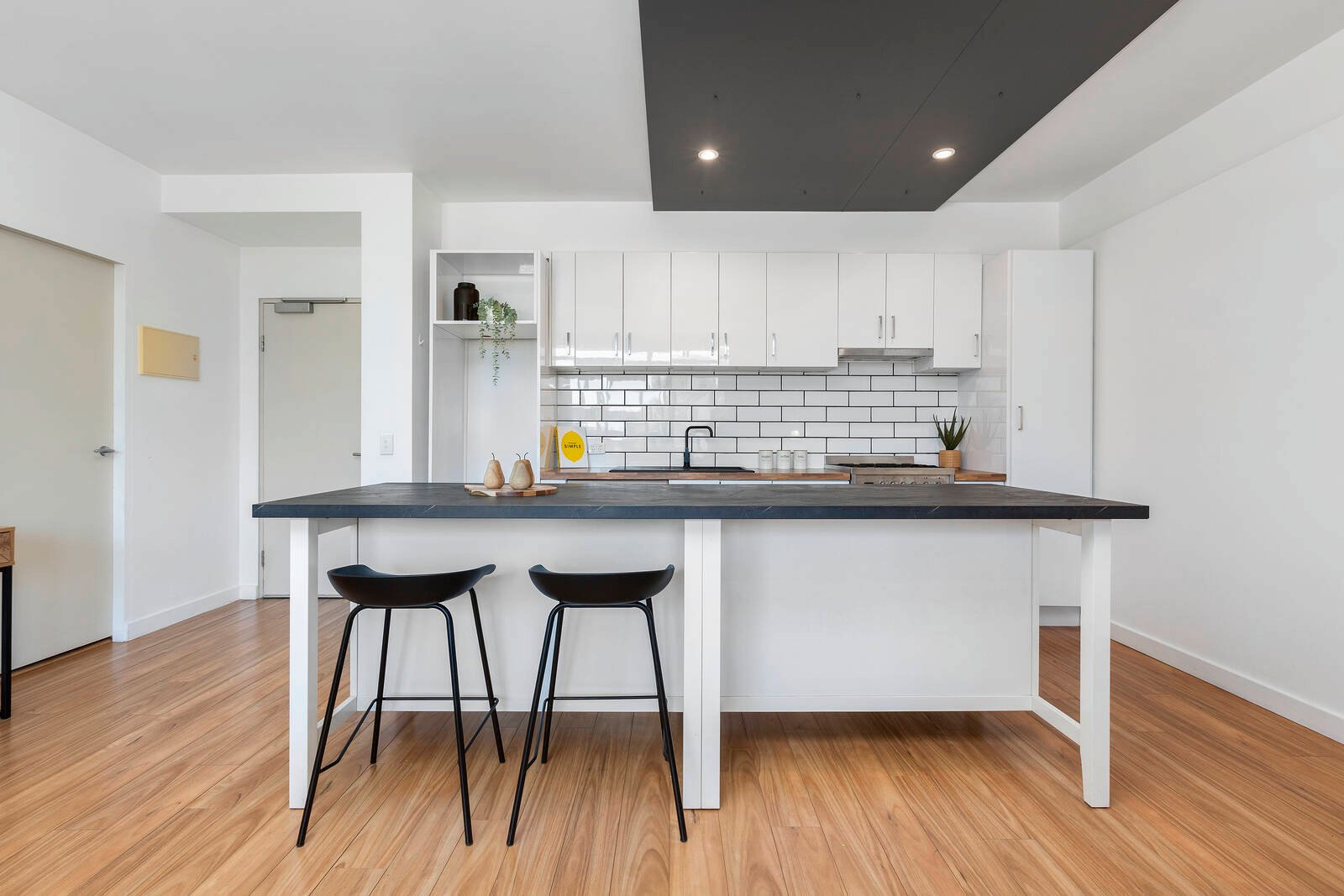 Facing east on the second floor, lifestyle loving first home seekers can spread out and enjoy generous proportioned living and dining areas with a smart contemporary kitchen featuring railway tile splashblack, moody black sink and impressively broad island with storage and dining. Sliding glass doors offer a seamless connection to an authentic entertainers’ balcony where outlooks over the leafy period rooftops extend as far as the Eureka building and City skyline. Matching the kitchen for style and substance, a stand alone bathroom with underbench laundry facilities serves a king sized bedroom with extensive BIRs/storage.