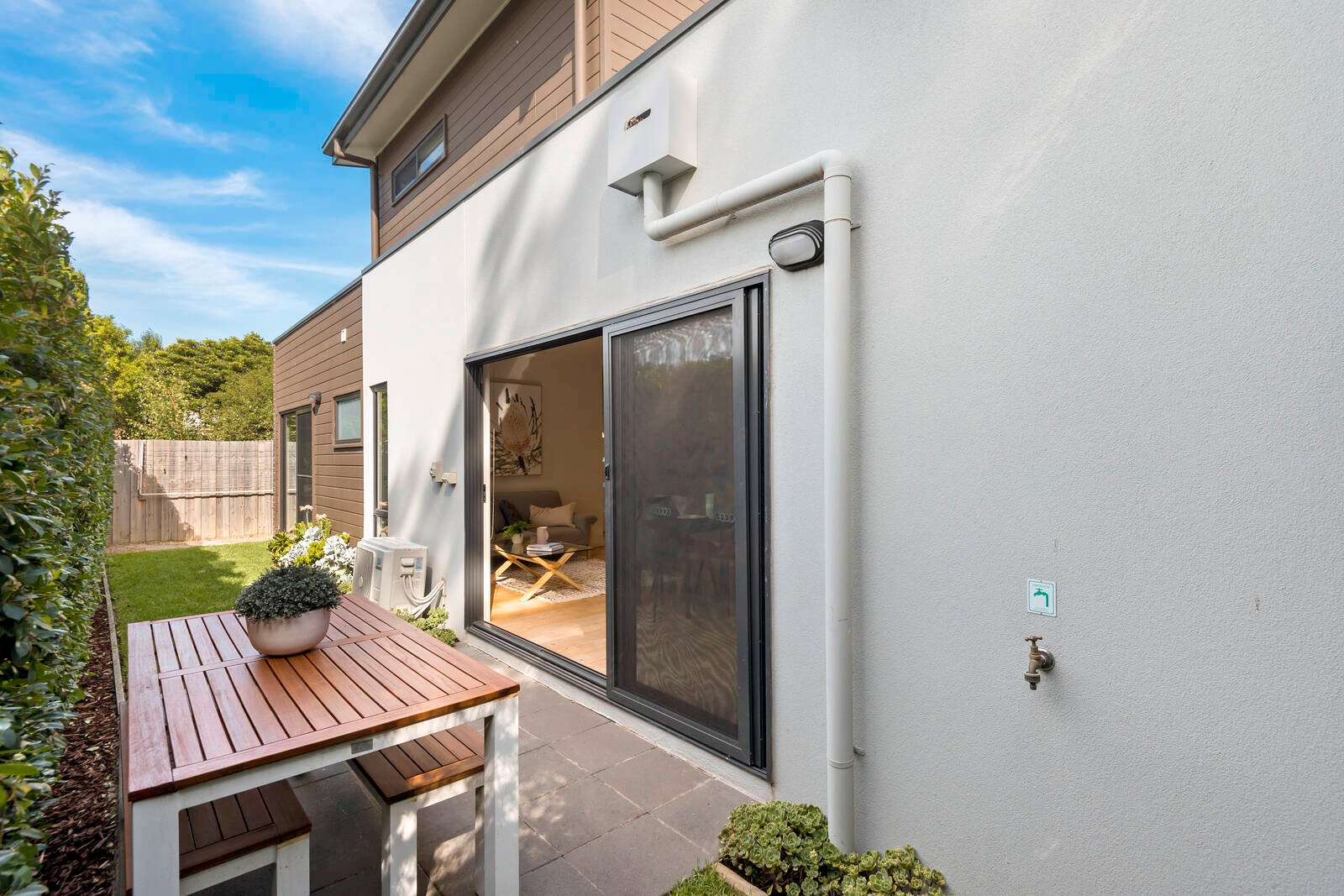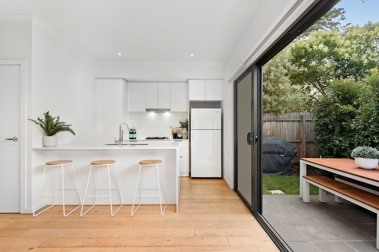 A savvy step into bayside living, this magnificent two-bedroom, two-bathroom sanctuary is situated a heartbeat from the relaxing coastal lifestyle you’ve been seeking. Located within strolling distance of the train, beach and local café for your morning coffee, this low-maintenance townhouse will be sure to impress with its peaceful rear position and contemporary style. Immersed in natural light and enveloped by leafy vistas, stylish open plan living and dining will delight, overlooked by a streamlined SMEG kitchen with ample cupboard space and sleek waterfall edge benchtops – beautifully extending through sliding doors to a lush private courtyard garden for alfresco dining and effortless entertaining. Spacious accommodation offers a flexible layout, comprising ground-level bedroom with mirrored built-in robes, courtyard access and an adjoining bathroom; whilst tucked upstairs is a light filled retreat with walk-in robe and a gleaming ensuite. You’ll appreciate split-system heating and cooling, a slimline pet door, instant gas hot water and single auto garage with internal access. With the new Edithvale Train Station at the end of the street, a few steps further to popular eateries, shopping, pristine beaches and Edithvale Lifesaving Club, plus with local schools and reserves in close proximity – this near new beauty is lifestyle perfection.