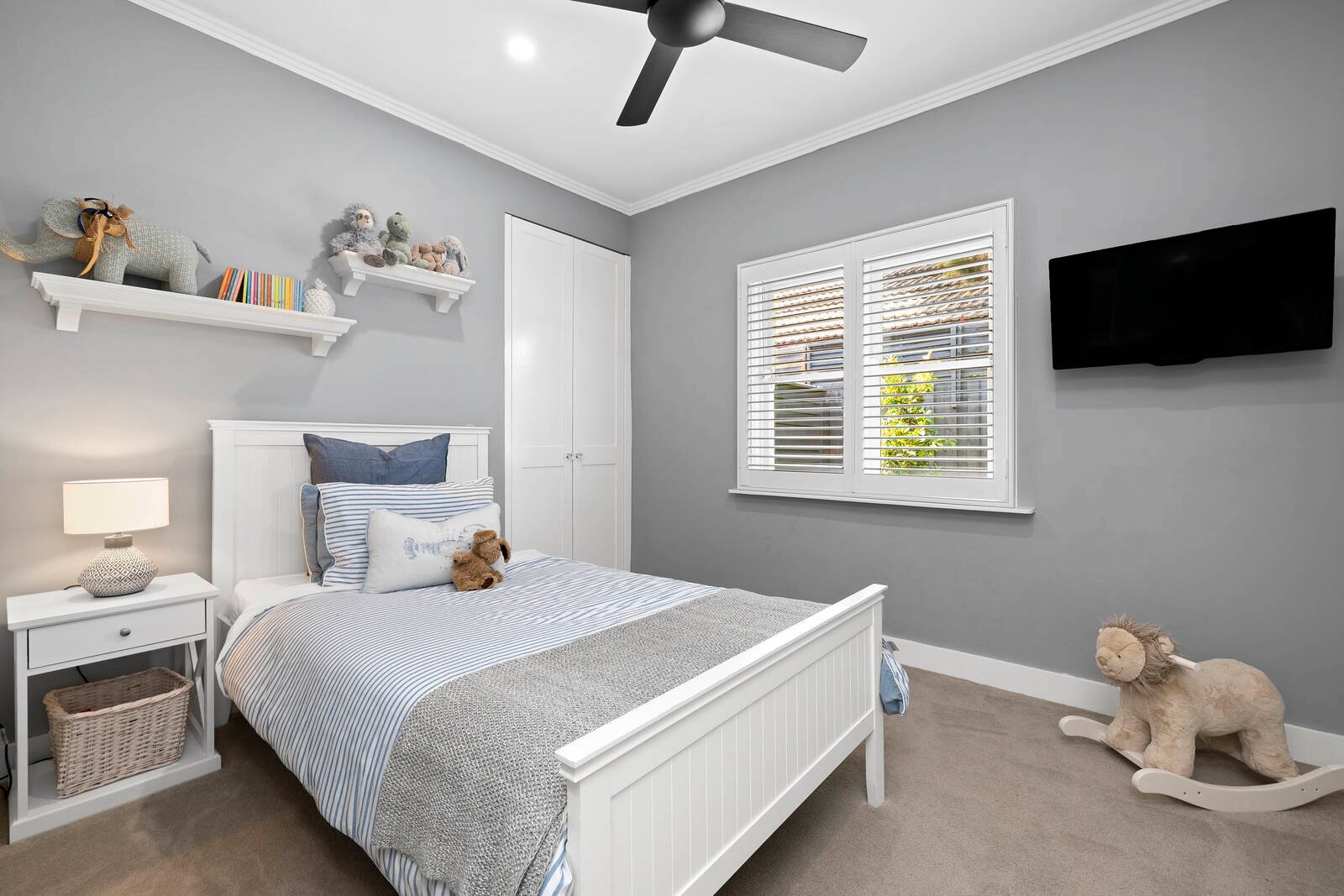Three additional bedrooms all boast custom built-in storage and ceiling fans - they share a magazine-worthy family bathroom with exquisite floor-to-ceiling tiling and premium fixtures & finishes.