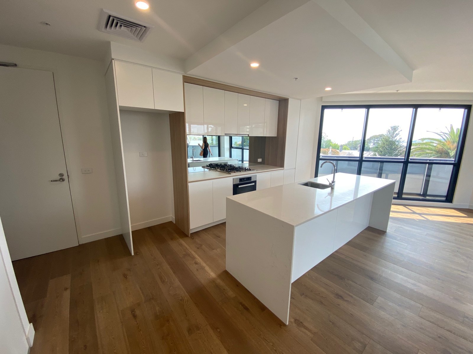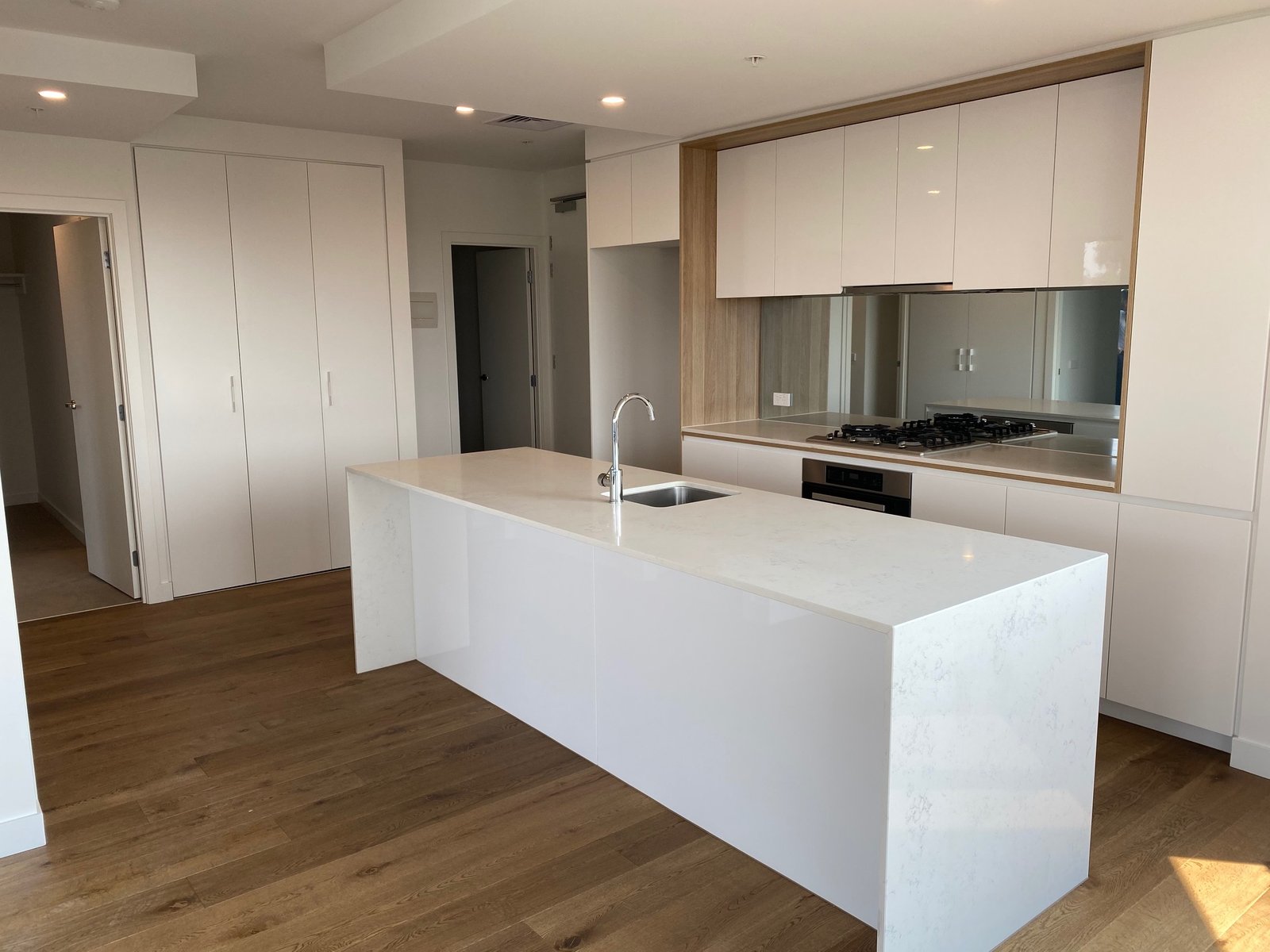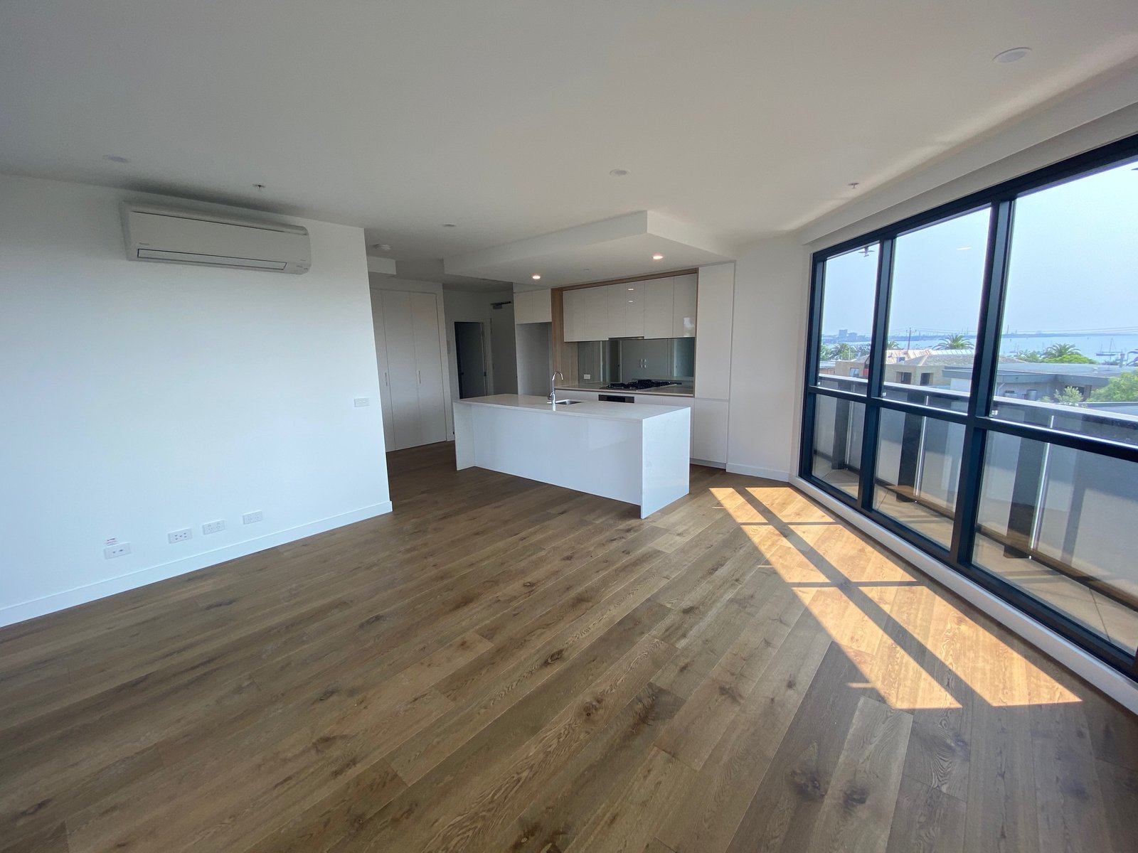 2 bedrooms with an outlook over Geelong, main has walk in robe and ensuite. Open plan kitchen, meals and lounge which is larger than most apartments in the complex. Kitchen has stone benchtops, dishwasher, top quality Miele gas cooktop and electric oven.