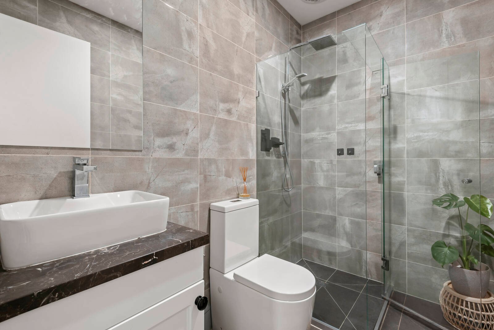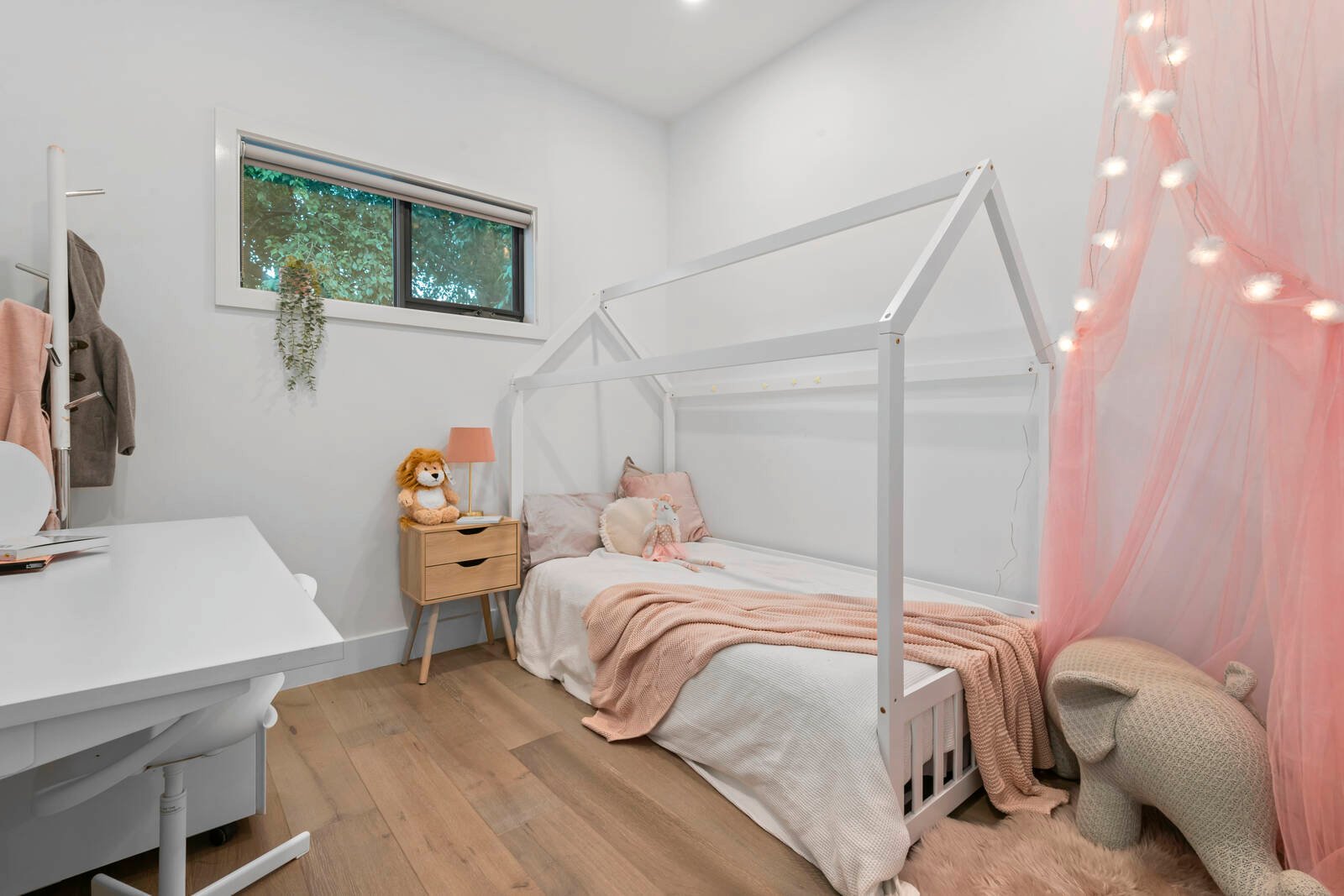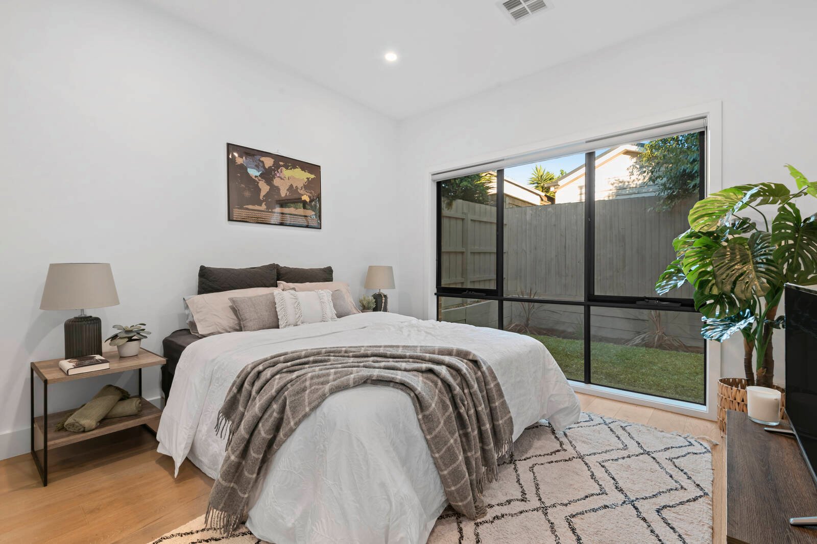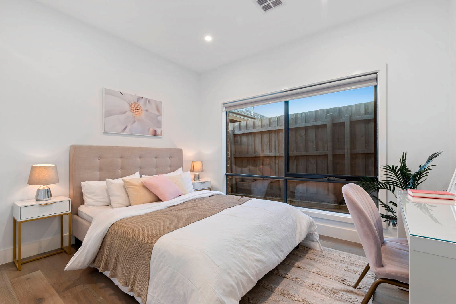 Combining luxury living with a low-maintenance lifestyle, this sleekly styled rear home opens with an airy open-plan living and into three versatile bedrooms - the third perfect for your little one or as a work-from-home office. Fitted with a state-of-the-art Bosch appliance kitchen, high quality climate-control ducted system, a hidden European laundry and a sparkling fully-tiled bathroom. This single-storey home showcases exceptional finishes with custom cabinetry, Italianate Staturio and Nero Marquina marble benchtops and splashbacks, glossy porcelain tiles and premium oak floors throughout.