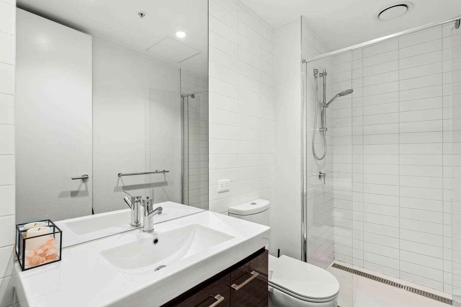 The kitchen is sleek and stylish with plenty of cupboard space and overlooks the dining and living space with its beautiful timber flooring, split-system heating and cooling, and sliding-door access to the real showstopper of this home – the balcony. Step outside and be wowed by the incredible views of Melbourne’s stunning city skyline – a breathtaking panorama of urban life right outside your window, that only gets more beautiful at night as the city lights up. A secure car space tops this home off – a rare commodity in this bustling location.