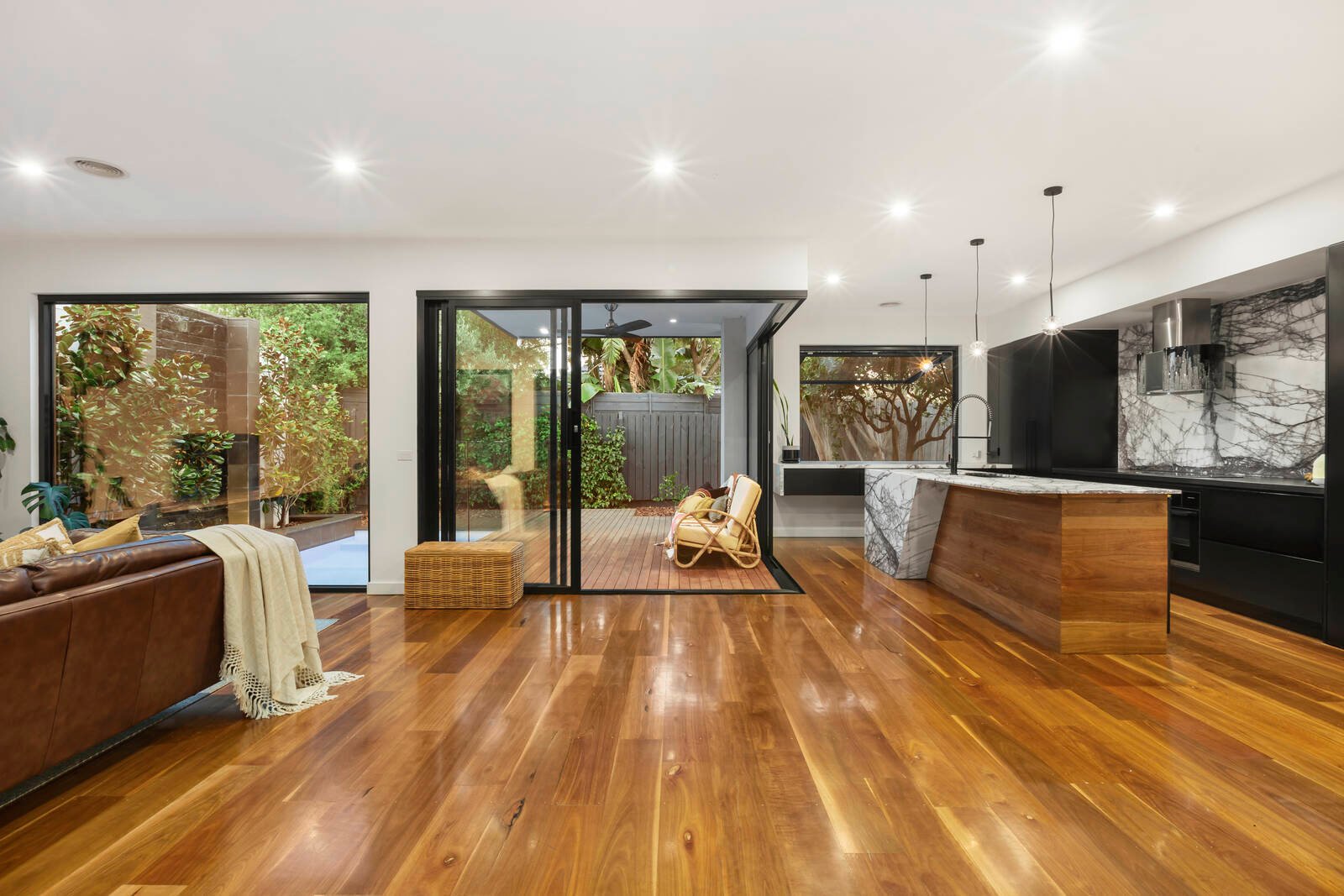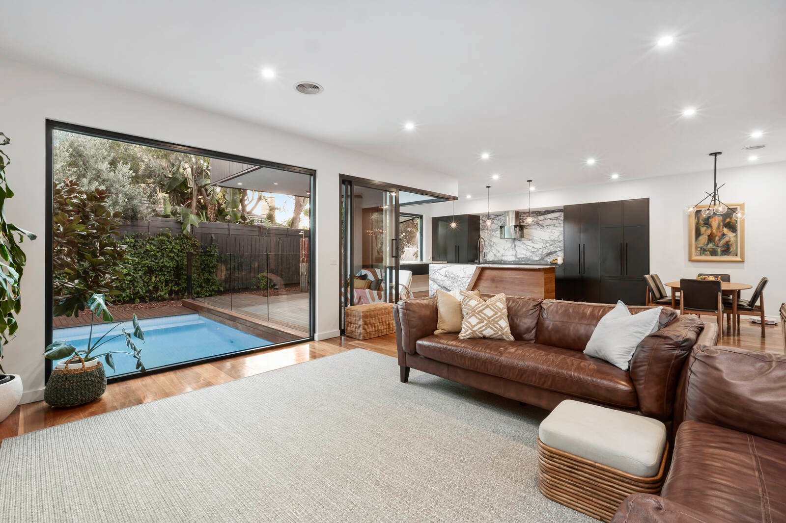 The unique features continue inside and out – from the stone egg-bath in the family bathroom to the outdoor shower set against an ironbark bollard originating from Appleton Dock. With high-tech extras to match the luxurious design, the home is appointed with ducted heating and air-conditioning, a Ring smartphone-compatible security system, high-spec double-glazing, and high-coverage irrigation supported by a 2000L water tank.