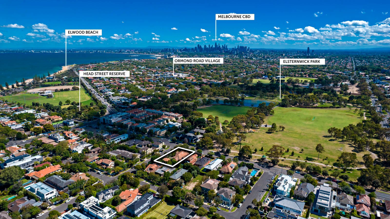 Dual street frontages and a north-westerly aspect open up your design options to revive the original residence with its grand proportions and wealth of period features. Or rebuild one or two magnificent homes opposite Elsternwick Park within a short walk of the beach and fine schools as well as cosmopolitan shopping and dining strips (Martin & Bay streets and Ormond & Glen Huntly roads) and public transport.
