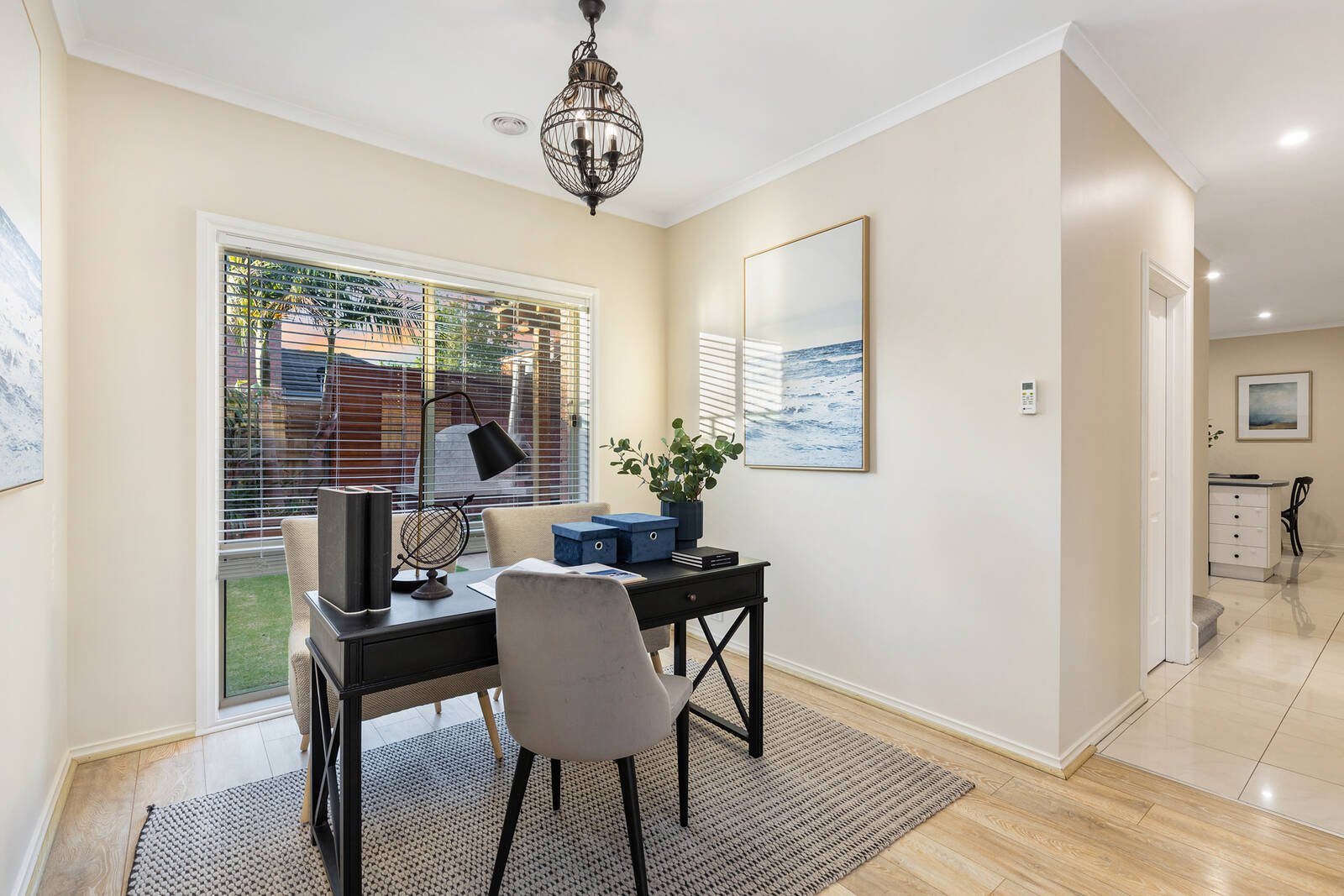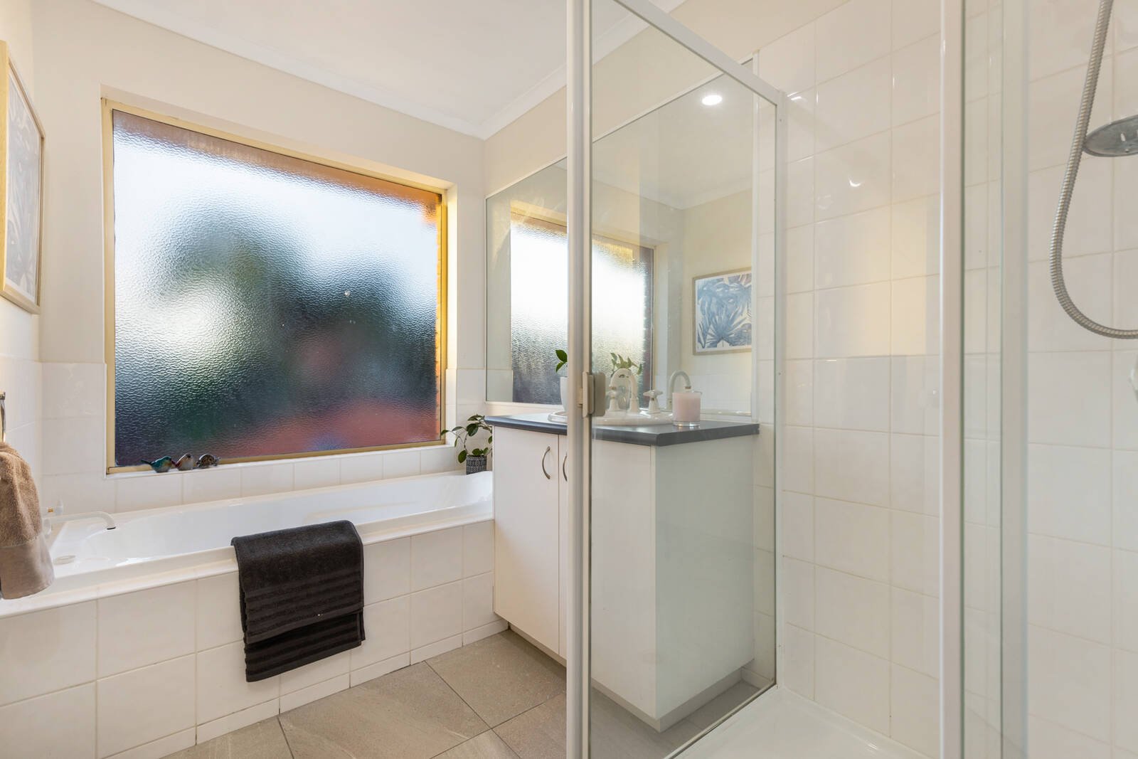 Relax inside, entertain outside, find the ultimate easy-living entertainer in the Royal Palms Estate’s quietest locale. Highly accommodating in low-maintenance grounds with living-dining with room to fit a home-office, this three bedroom, 2.5 bathroom home offers a highly-entertaining lifestyle with a quality kitchen (with Bosch dishwasher) overlooking family meals, and a lofty vaulted-ceilinged family-room to fit the biggest entertaining lifestyle. There’s even the ultimate entertainers’ garden, with a woodfire-oven and terrazzo-bench in the northerly rear yard – already plumbed with gas and water for a BBQ kitchen!