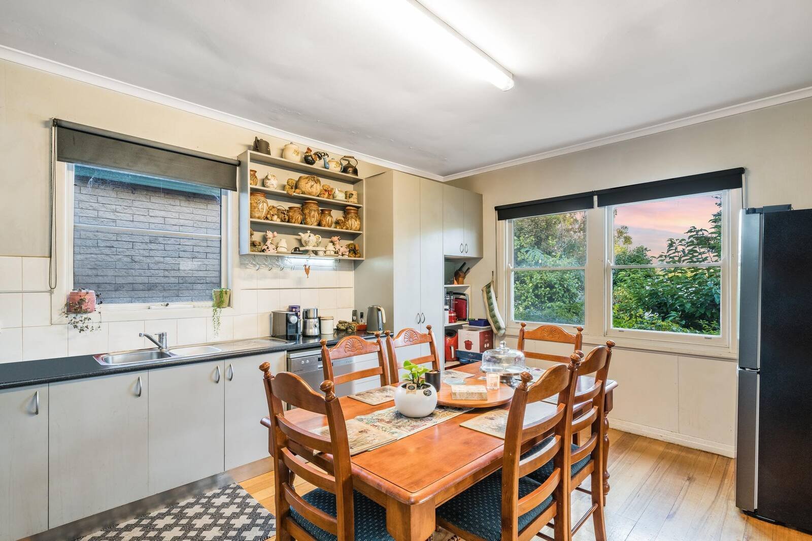 The kitchen, sitting next to the main hub of the home, is finished with original fittings and fixtures including gas cooking, ample cupboard and drawer storage, and a fantastic dining space, making it a perfect area for gathering with friends and family.