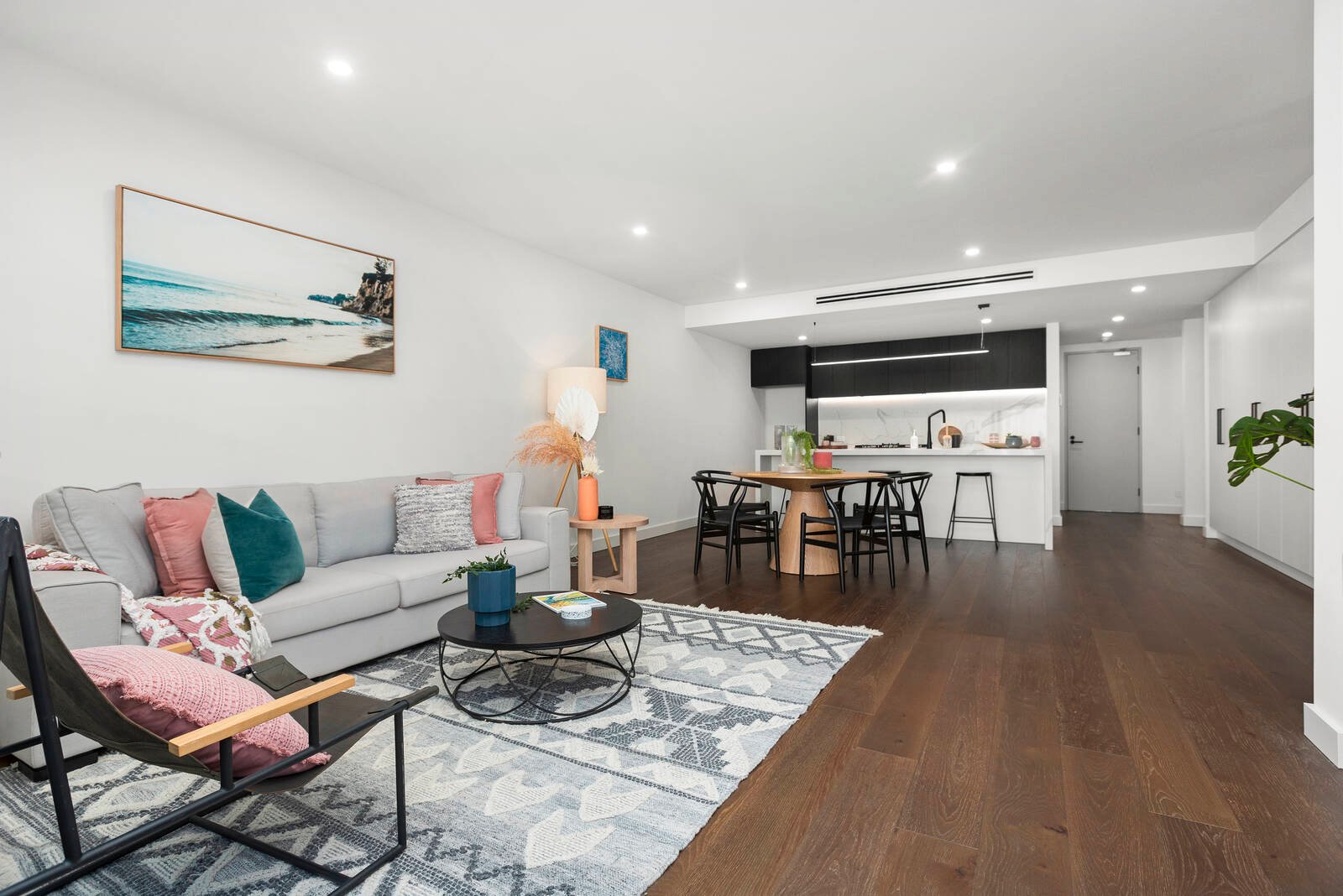 A contemporary design harmonises with the free-flowing interior, where sublime finishes complement the streamlined stone kitchen featuring quality stainless steel appliances, and light-filled open-plan living/dining zone, unfolding to a...