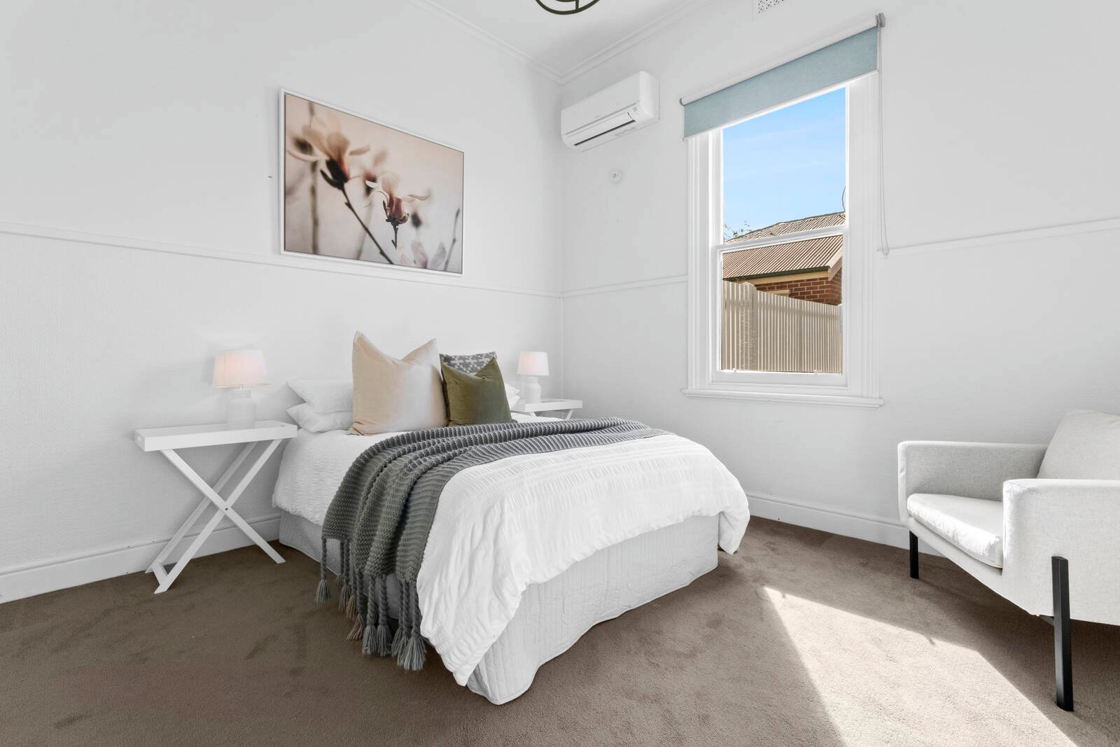 The classic Federation façade forms and elegant introduction to the home and on entry, a long central hallway with ornate arch, high ceilings and timber floors showcases all the hallmarks of its original era. A fresh colour palette and stylish updated light fittings add a classic contemporary element, creating a beautiful blend of old and new. Comprising three generous bedrooms, the master features an original fireplace with pressed metal ceilings creating a captivating ambience within. A bright family bathroom services the home finished in floor-to-ceiling tiles, original lining boards, modern vanity and quality fittings and tapware.