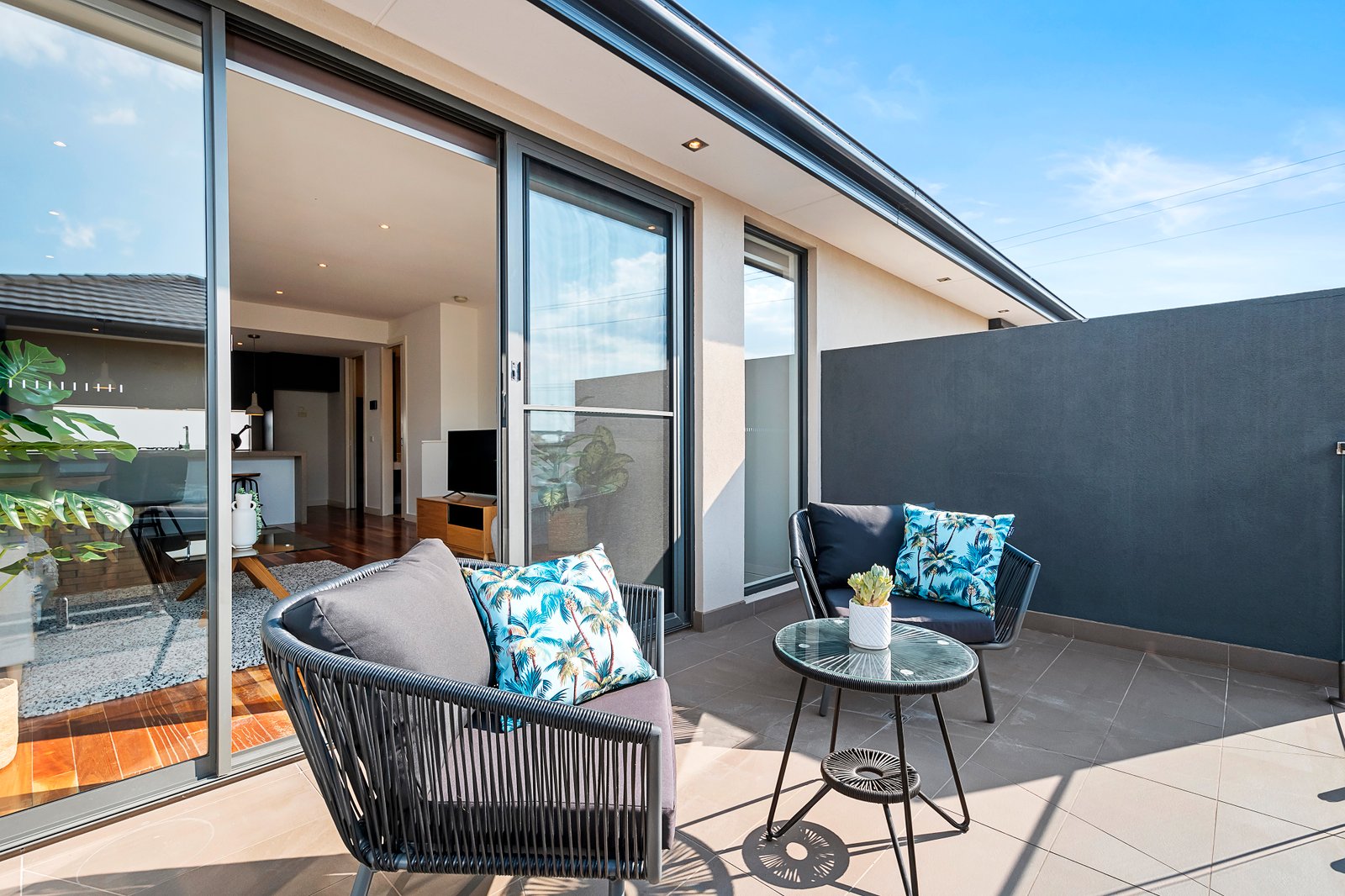 Taking full advantage of its coastal area, this luxury 2-bedroom townhouse by renowned local builder Patterson Homes, delivers meticulously crafted low-maintenance living in the heart of Bonbeach. Maximising space and light, admire the clever design and premium finishes with a sleek glass stair balustrade, timber floors, stone benchtops and stunning landscaped gardens. Upstairs, open plan living and a sensational balcony - ready to indulge in a lifestyle of entertaining, evening cocktails and sunsets over the bay. The stylish Blanco kitchen will impress with a pantry and sleek stone bench including an Island bench with waterfalls. Both downstairs bedrooms are with built-in robes and individual splits systems; sharing a hotel style bathroom. Features split system heat/cool, powder room, video intercom, private courtyard and single auto garage. With rail, cafes and the beach at your doorstep plus moments to sporting reserves and schools – this quality home as featured on ‘Best Houses Australia’ will appeal to first home buyers and investors alike.