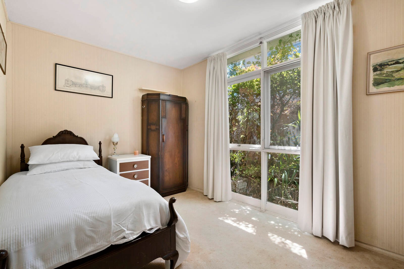 Designed by one of Melbourne’s most significant post-war architectural figures, Neil Clerehan, the light-filled three bedroom layout reveals wonderful modernist features including easy interior flow, high raked ceilings, exposed beams, timber panelling, and extensive glazing.