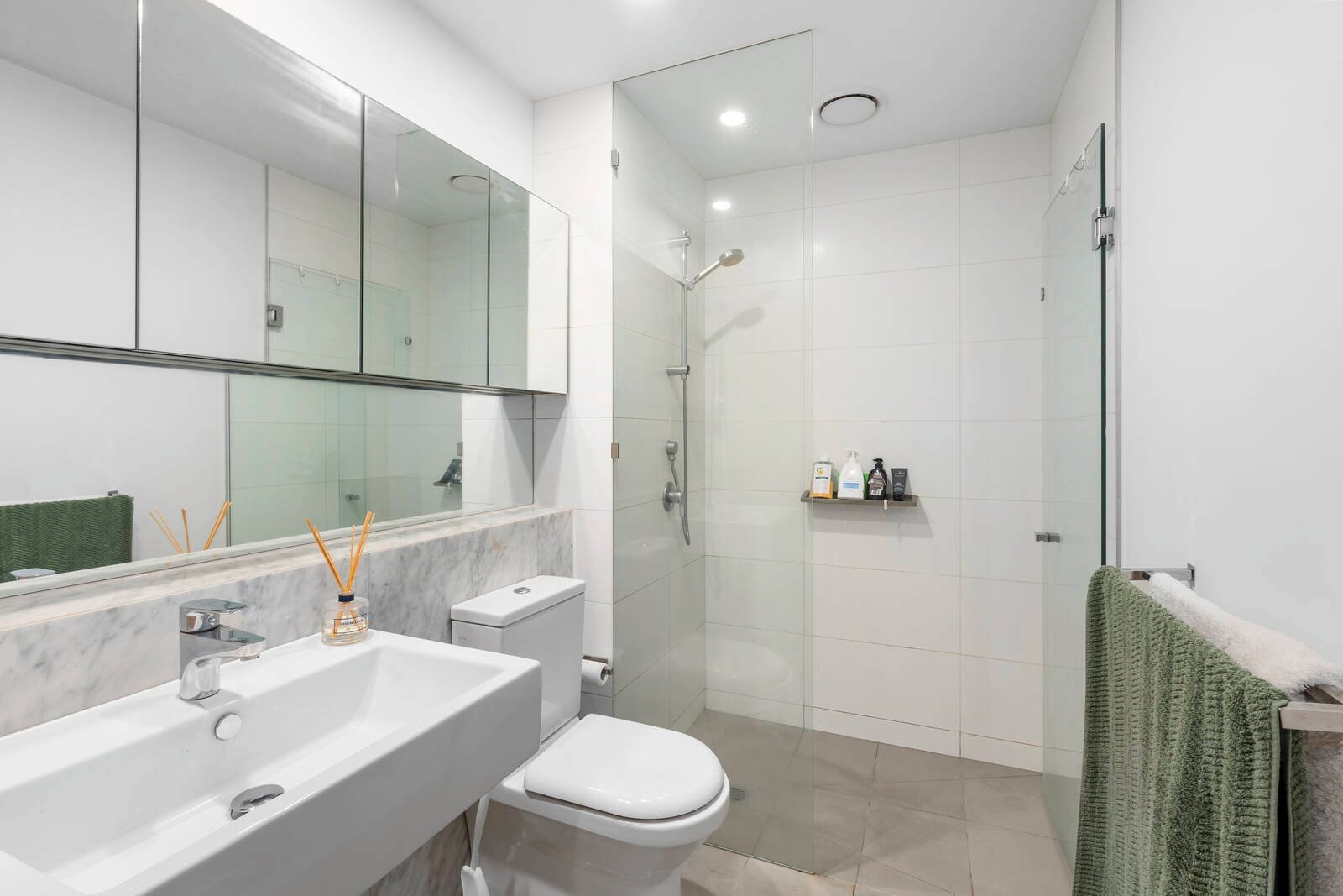 Spacious open-plan living and dining is complemented by a modern stainless steel kitchen complete with stone splash backs, gas cooking, dishdraw and ample storage which opens onto the full width terrace with ease. A generous bedroom is accompanied by a wall of mirrored BIR and serviced by a stunning central bathroom with European laundry.