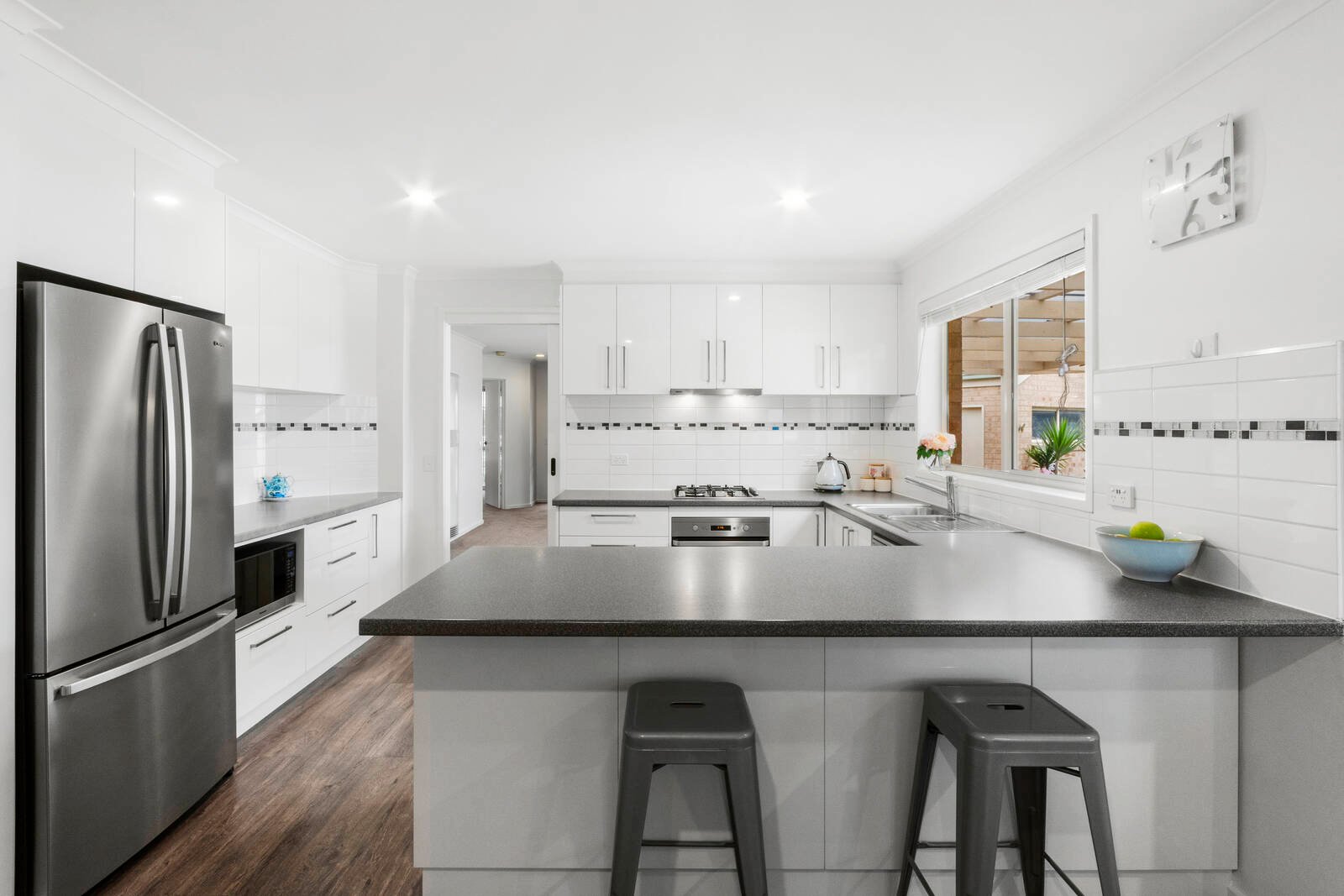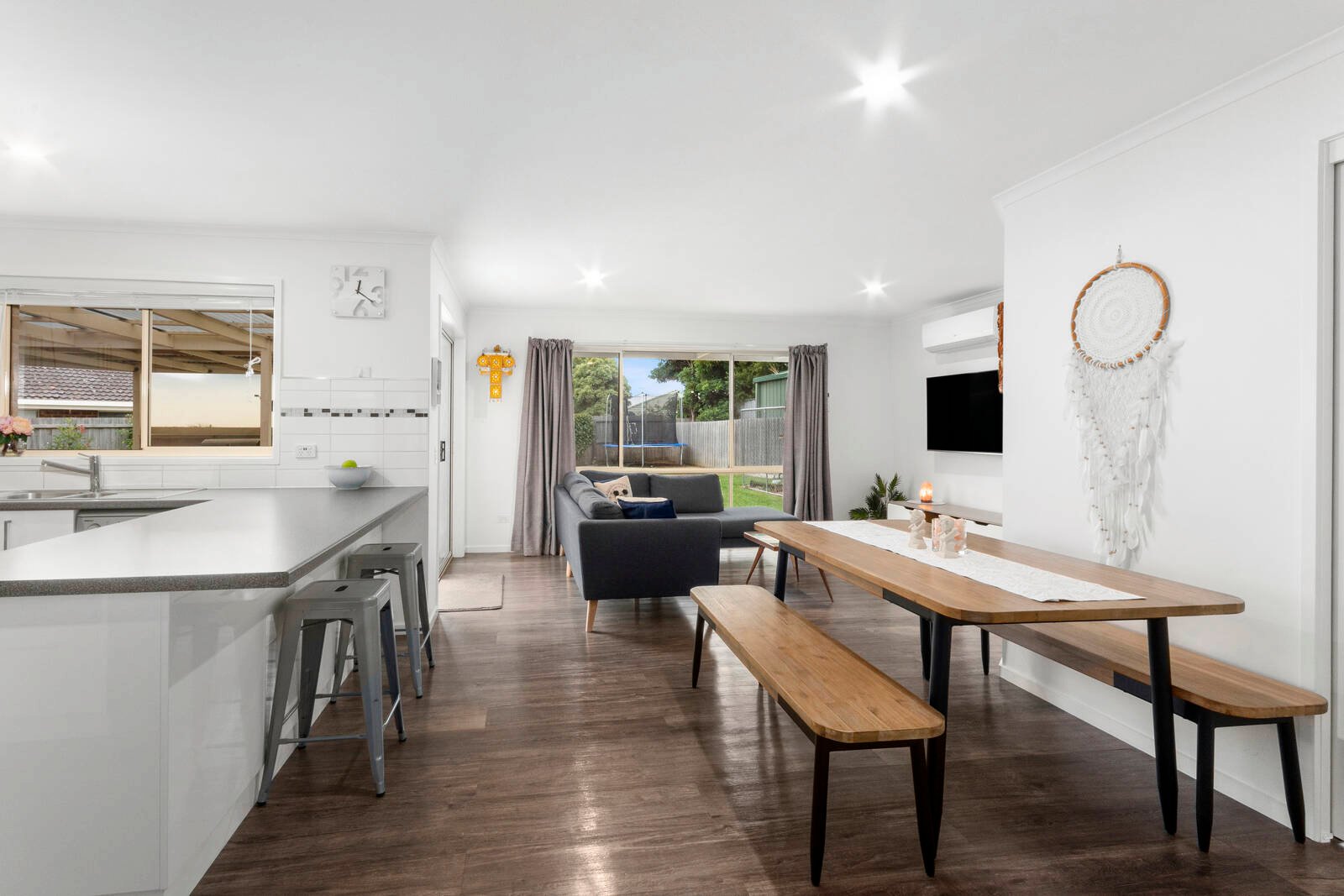 The interiors are in flawless condition, with contemporary updates over the last few years including new flooring, black fittings and stunning new bathrooms. Both the lounge and open plan living/dining/kitchen zone flow onto the covered outdoor entertaining area, creating a beautiful setting for everyday enjoyment and hosting loved ones. The kitchen features a breakfast bar and stainless steel appliances (dishwasher, oven, gas cooktop, rangehood).