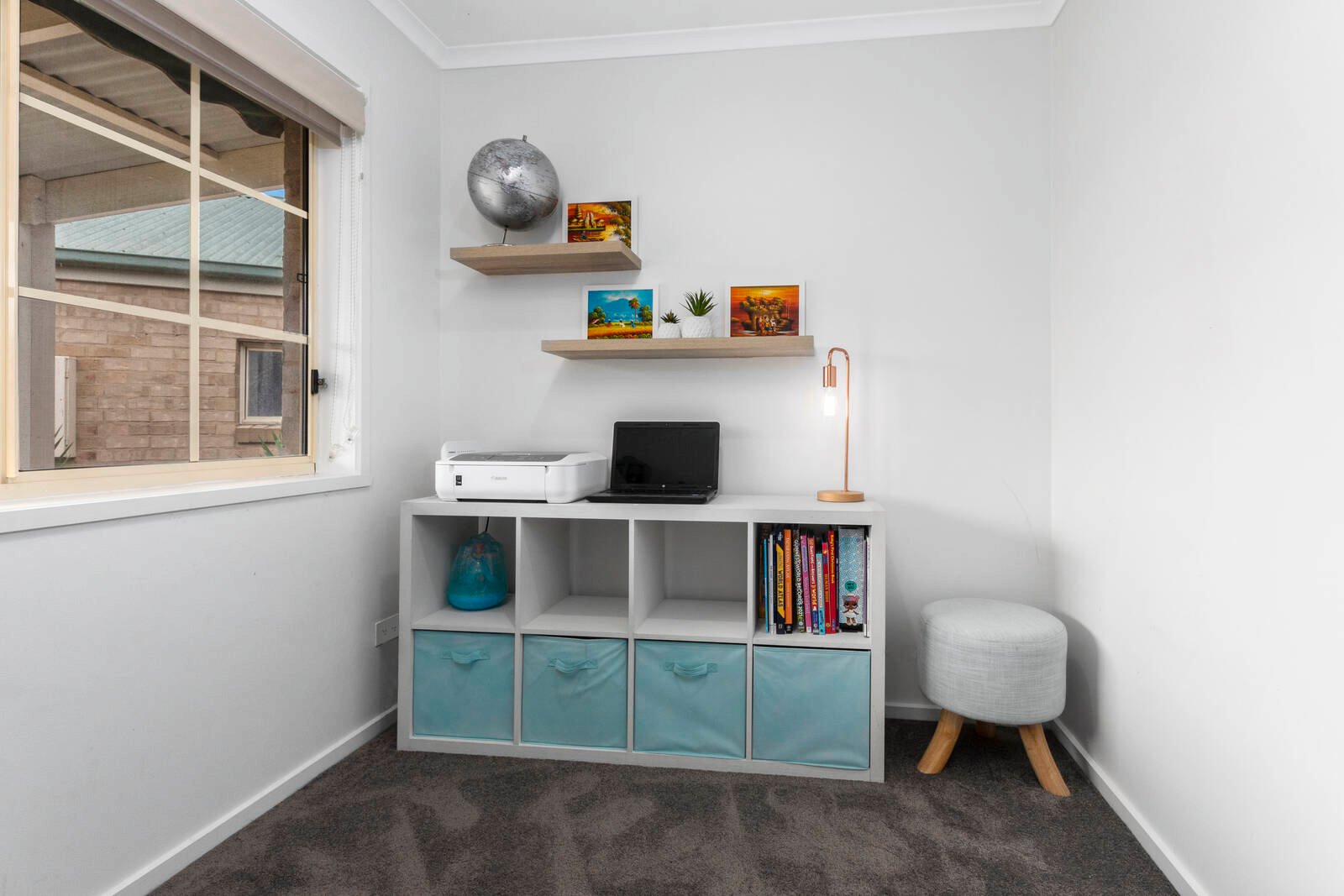 Overlooking the front garden, the main bedroom will delight with a walk-in robe and chic ensuite. Two additional bedrooms with built-in robes share close access to the main bathroom, which showcases a semi-attached bathtub and dual vanity. Both bathrooms exude on-trend style with stone benchtops and plantation shutters. The front study makes working from home a breeze, while the laundry completes the layout. A gas wall furnace and split-system air conditioner provide comfort.