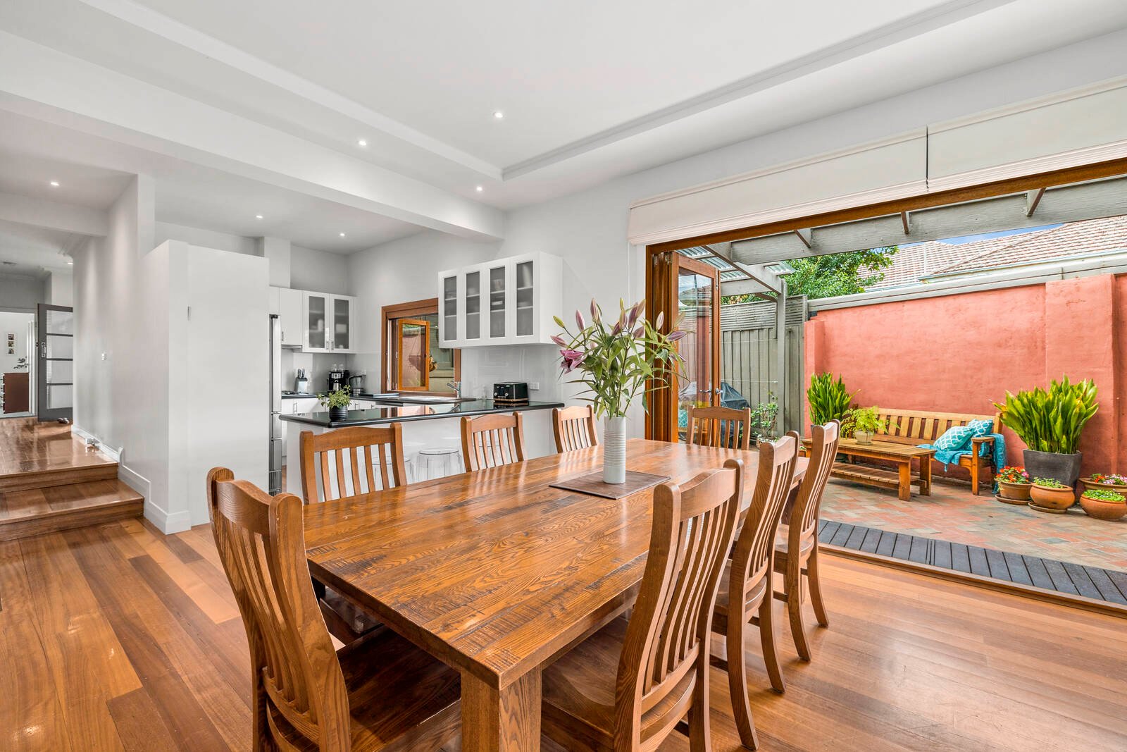 Surrounded by beautiful landscaped gardens, this inviting home boasts quality appointments throughout, and a light-infused floorplan that delivers all the warmth and contemporary comfort you desire without the maintenance. Accented by gleaming timber floors and plantation shutters, a refined lounge with gas log fireplace leads to a modern kitchen featuring stone benches, Miele dishwasher, breakfast bar and servery window, adjoining a spacious open-plan living/dining area – unfolding through bi-fold doors to a paved entertaining setting and beautiful gardens with firepit. The main bedroom is fitted with an ensuite/WIR and opens to the rear garden, whilst 3 additional robed bedrooms, immaculate bathroom, ducted heating split system AC, workshop and double carport add further luxury. A true lifestyle opportunity, moments to local shops, Duncan McKinnon Reserve, Packer Park, schools, transport and Chadstone Shopping Centre.