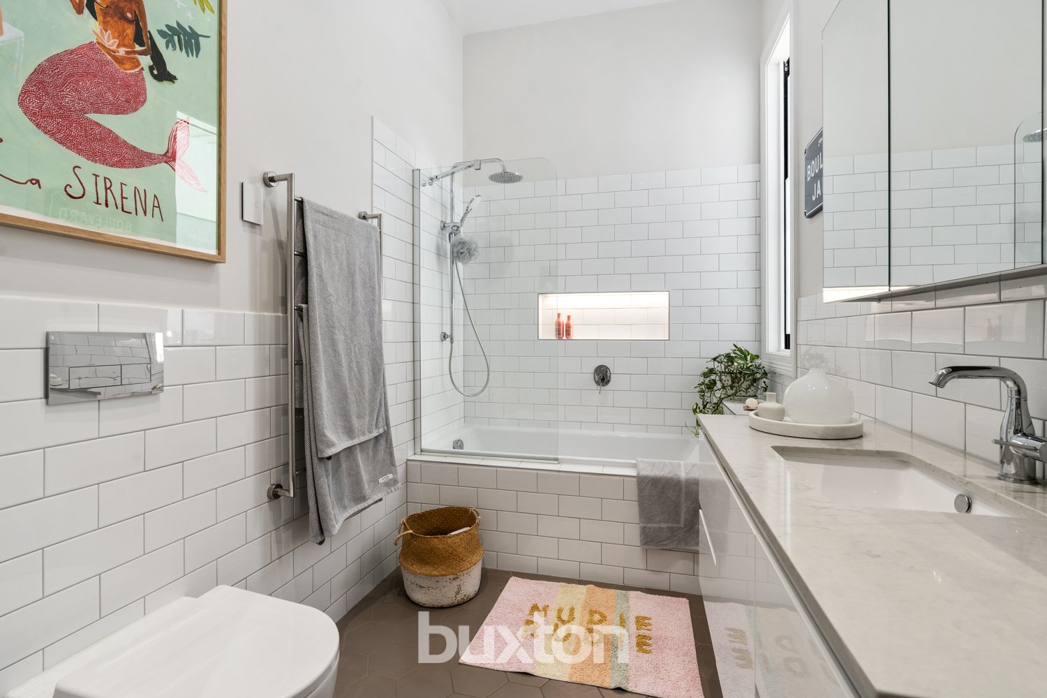 Each bedroom features built in robes and 100% woolen carpets before reaching a modern bathroom (with shower over bath) plus built-in laundry and storage. Enjoy the comforts of a double shower head and heated towel rails.
