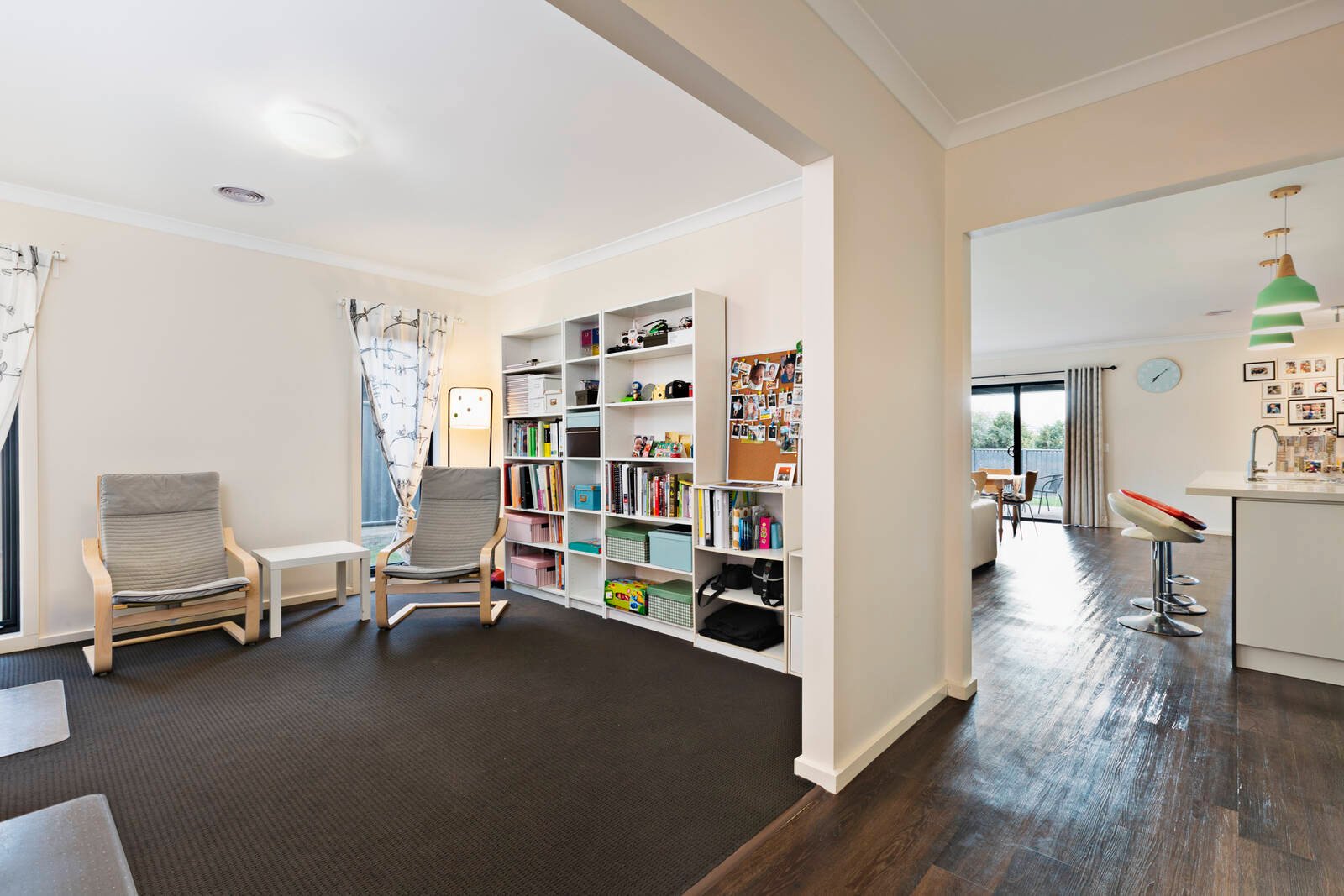 Leading down the hall way features the open plan kitchen, dining and living area. The kitchen is well equipped with gas cooktop, oven, stone benchtops, dishwasher, double sink and walk in pantry. A kids' wing has been thoughtfully designed to include an additional three large bedrooms all offering built-in robes, and third living area perfect for a play room. Close by is the family bathroom with bath, shower, vanity and separate toilet.