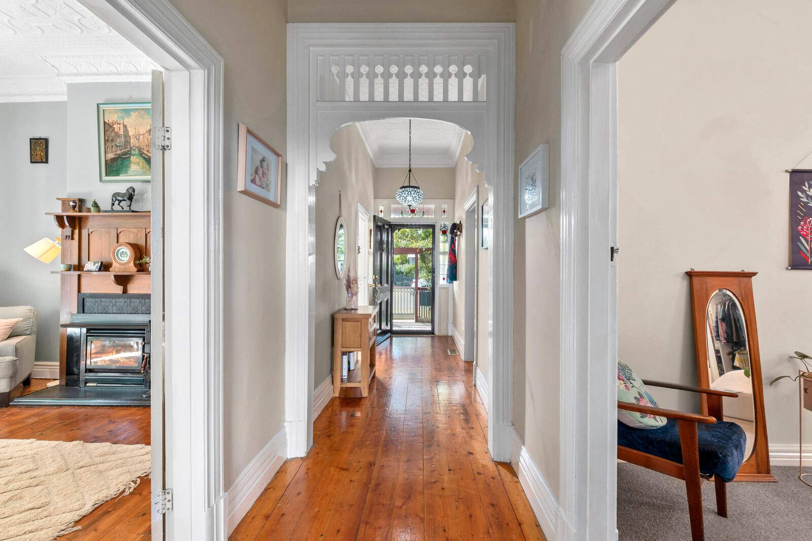 A picket fence, established gardens and elegant federation façade form a captivating introduction to the home. On entry, beautifully preserved original features remain, including high ceilings, stunning hallway arch, polished timber floors, ornate cornice and ceilings.