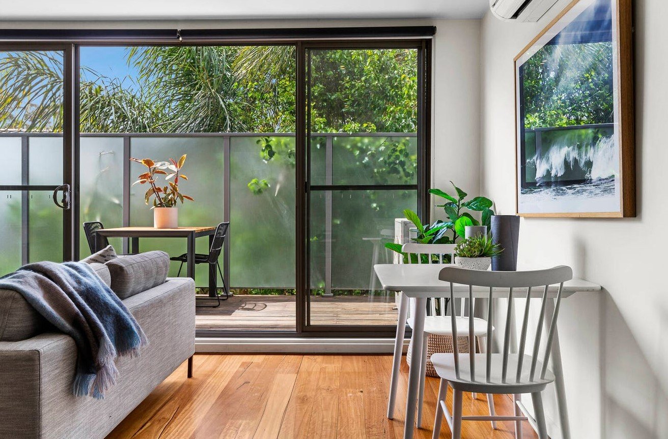 The bedroom is an expansive double which boasts ample built-in wardrobes and enjoys ensuite access to the sleek bathroom that conceals a Euro laundry, whilst a cosy gas fireplace in the living room, split system heating/cooling and basement parking with storage cage are also offered. Set within a boutique building giving its residents video intercom entry, lift access and a tropical communal garden, Steps to the beach and bus routes, this premium address is also within a walk of the station, tempting dining options and shops. Inspections will impress.
