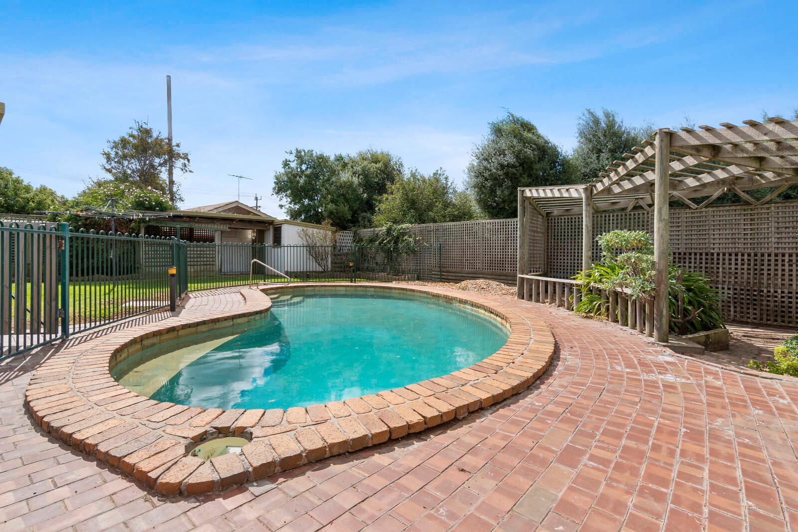 Outdoors, the expansive block provides plenty of space to play with an in-ground pool as its centrepiece. An undercover alfresco offers a private and sheltered area to relax or entertain, with a separate pergola area adding to the selection of spaces to be enjoyed. The garage includes pedestrian access to the alfresco and roller access to the rear yard, and a series of outdoor sheds allow for fantastic storage provisions.