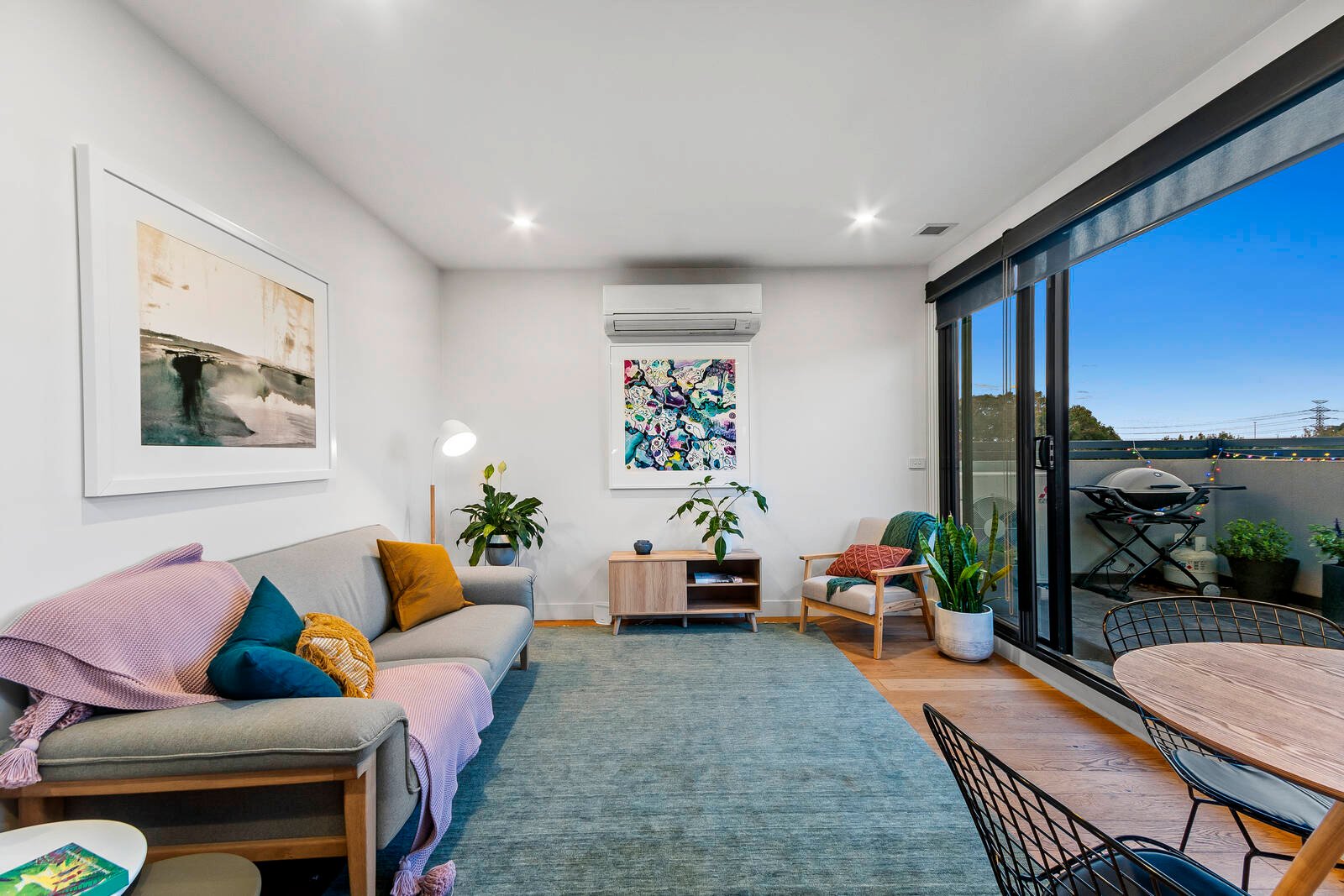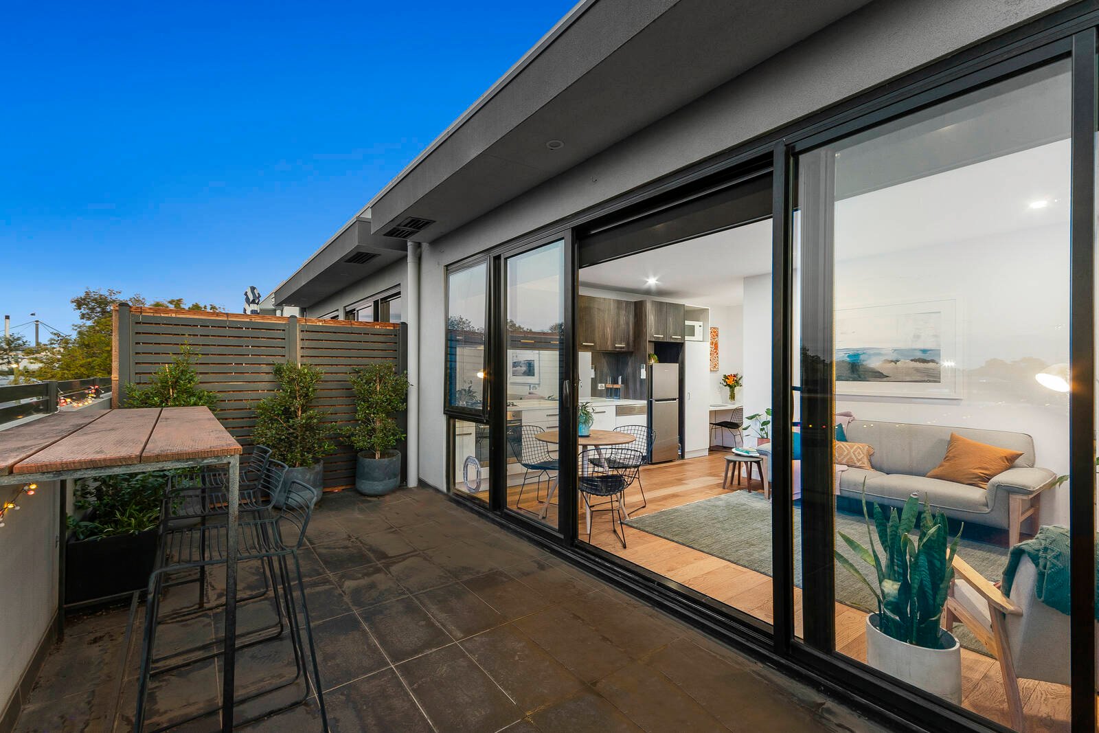 Enviable interiors are cleverly enhanced with the warmth of natural light, square set cornicing, fresh décor and matt-black framed wall of windows and glass sliding doors to the substantial alfresco balcony that’s entirely private and serene. Entertaining with a superior galley kitchen provides the perfect inspiration to create epicurean cuisine with its exquisite stone benchtops, SS oven, gas cooktop, integrated dishwasher and classy cabinetry of deep timber tones and crisp whites. There’s a gorgeous bedroom with mirror built in robes, black ceiling fan and framed window, a chic bathroom with a full width shower, integrated study desk, European laundry, split system heating and cooling, rich timber-toned flooring, secure monitored entry, lift, intercom, carpark and storage cage.