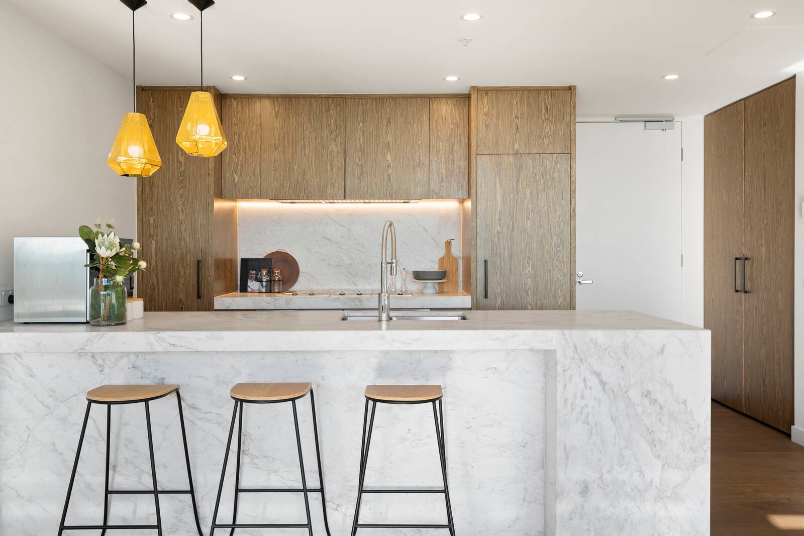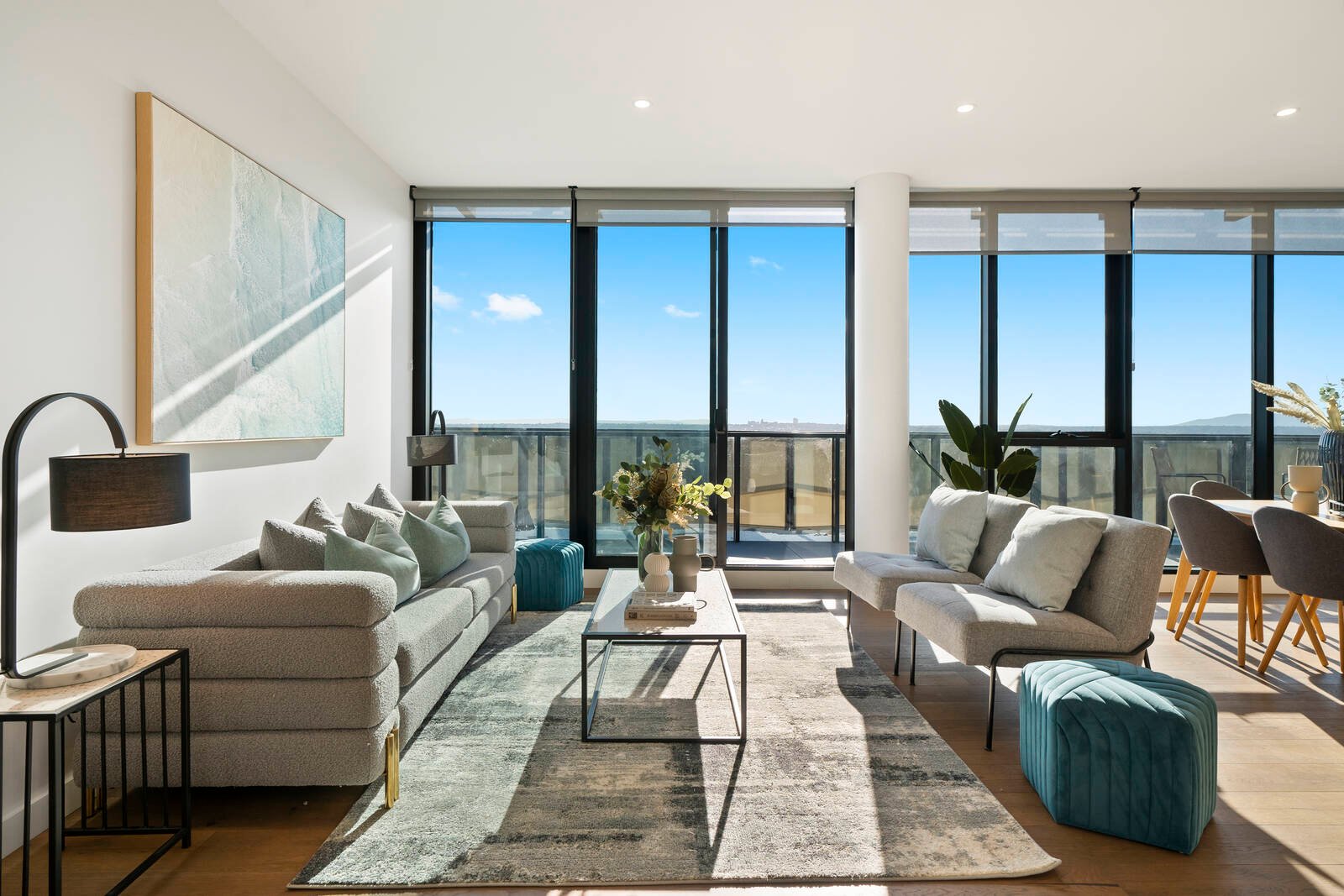 Offering a spectacular convergence of state-of-the-art design and boutique living, this immaculate penthouse residence champions an elevated outlook atop the renowned Vanguard apartment complex. Commanding northern views offer an unbeatable backdrop to a remarkable open plan living, dining and bespoke stone kitchen complete with breakfast buffet...