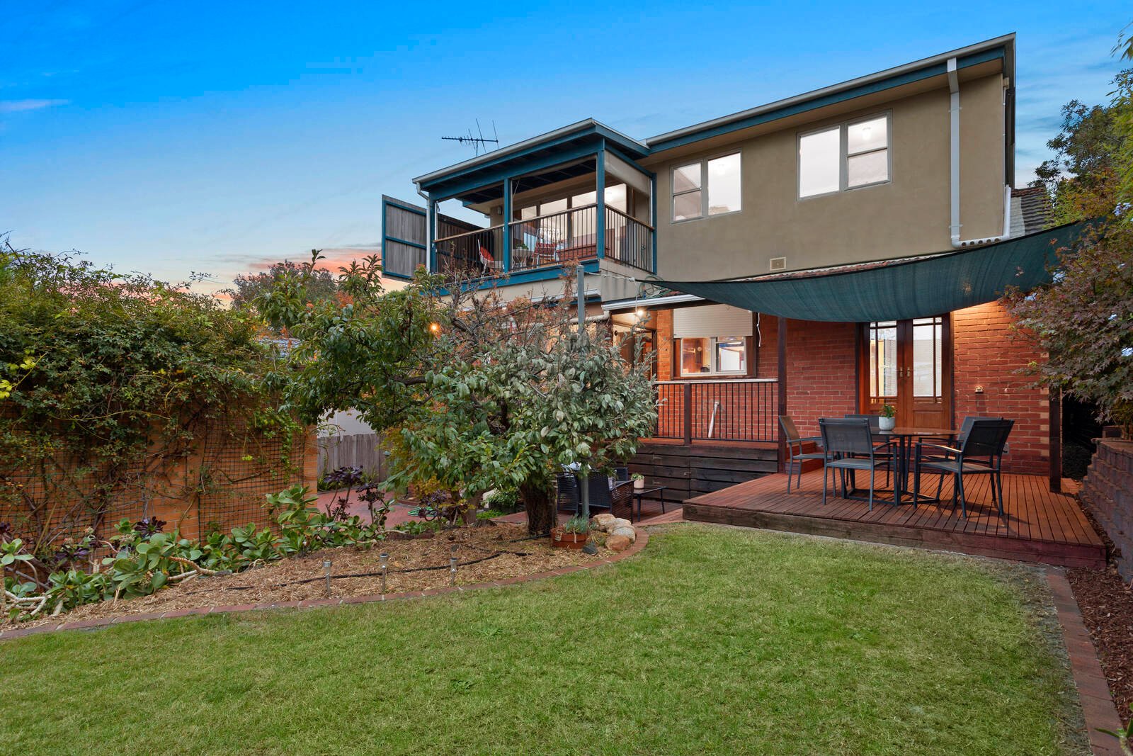 Step up to the treetops and step into your future in this beach-side Sandbelt locale. Elevated on high at a highly-sought, low-traffic address, this substantial two-storey home rises above the rest with extended three bedroom, two bathroom accommodation featuring gracious separate lounge and dining rooms with Art Deco detail, spectacularly sunny first-floor living with room to work and play (or perhaps fit a fourth bedroom)…and more living outdoors with a wide veranda and sail-shaded tiered decking in sun-drenched north-facing gardens.