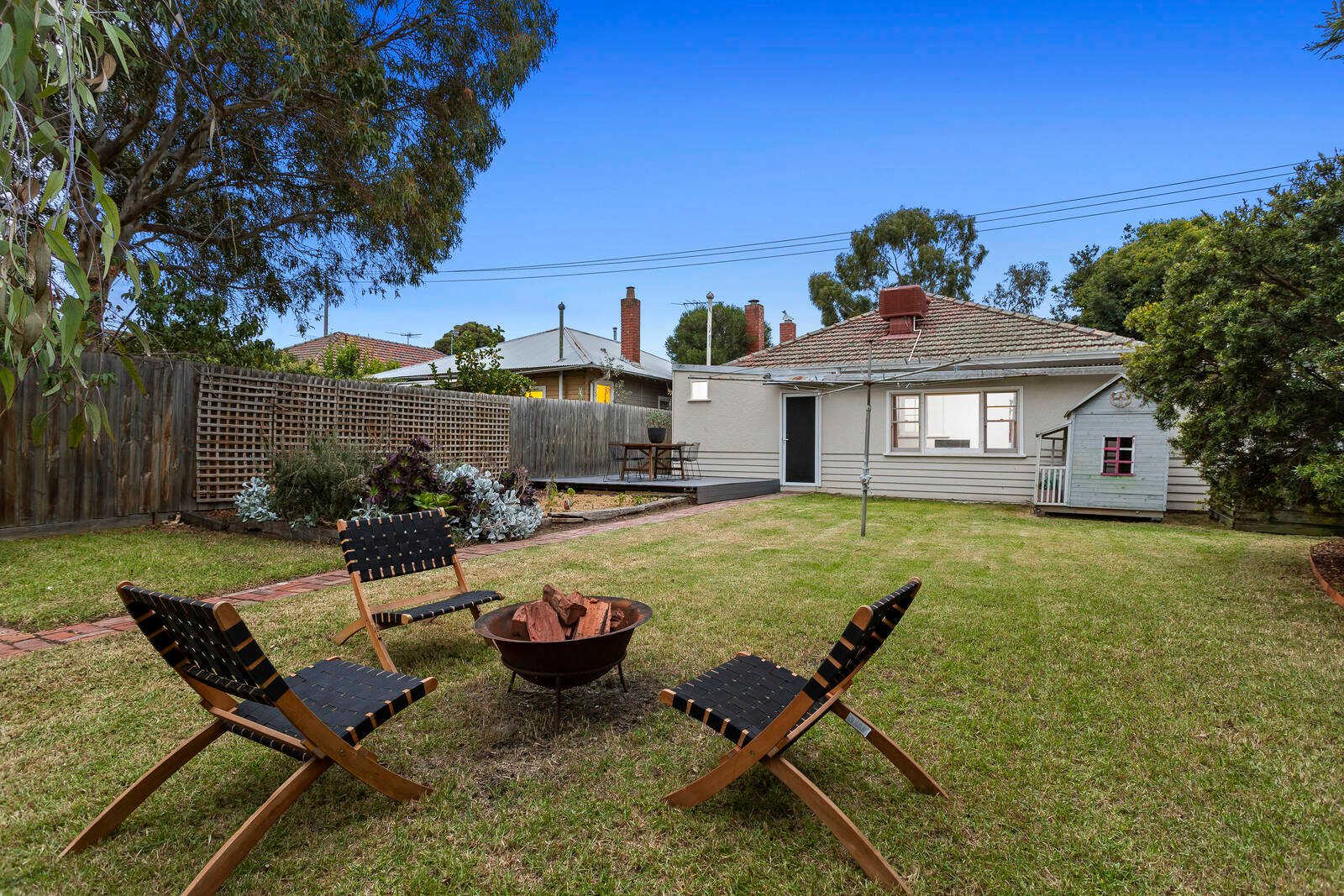 Perfectly pretty street appeal unfolds with a front picket fence and gorgeous gum-treed gardens that swathe a substantial home of flexible living, instant warmth and period poise. On 494m2 approx, this 1950’s weatherboard has been solar powered, extended and beautifully presented with polished timber floors, an open fireplace, picture rails, ceiling roses, ducted heating, at least three bedrooms, a separate study and separate spacious living, dining and alfresco dining domains.