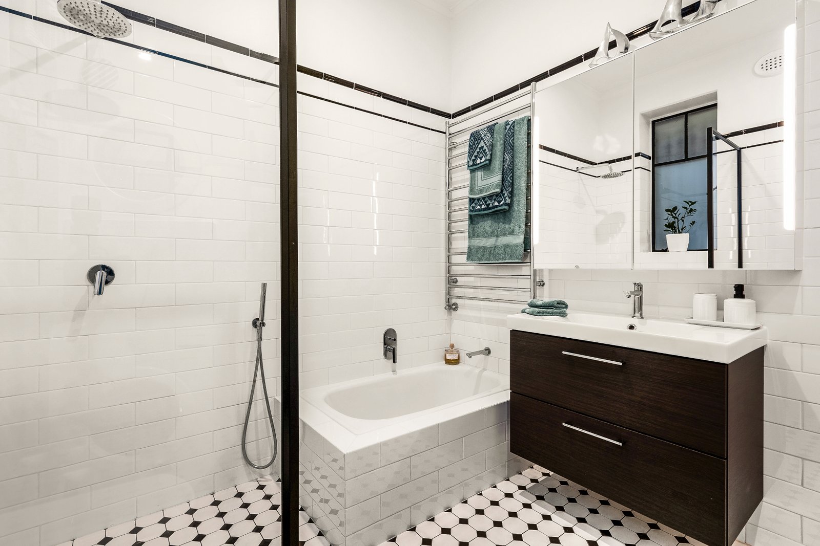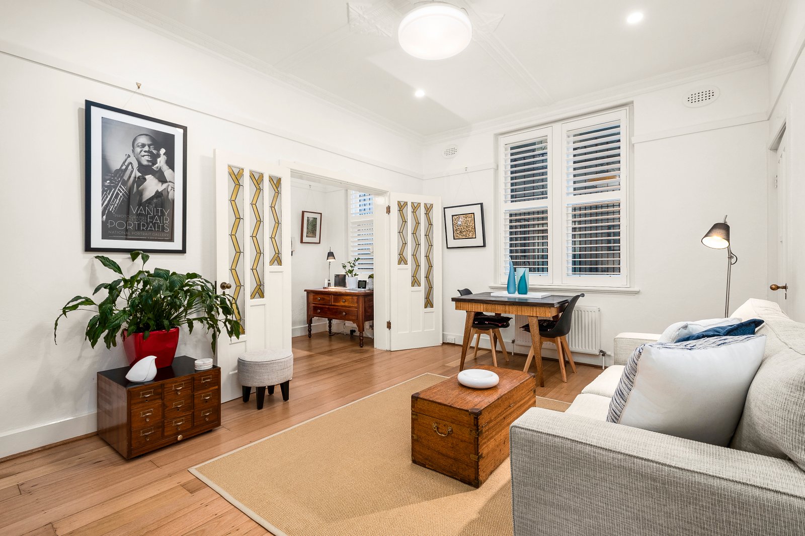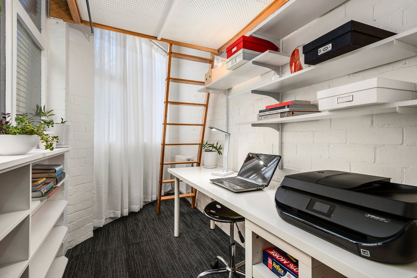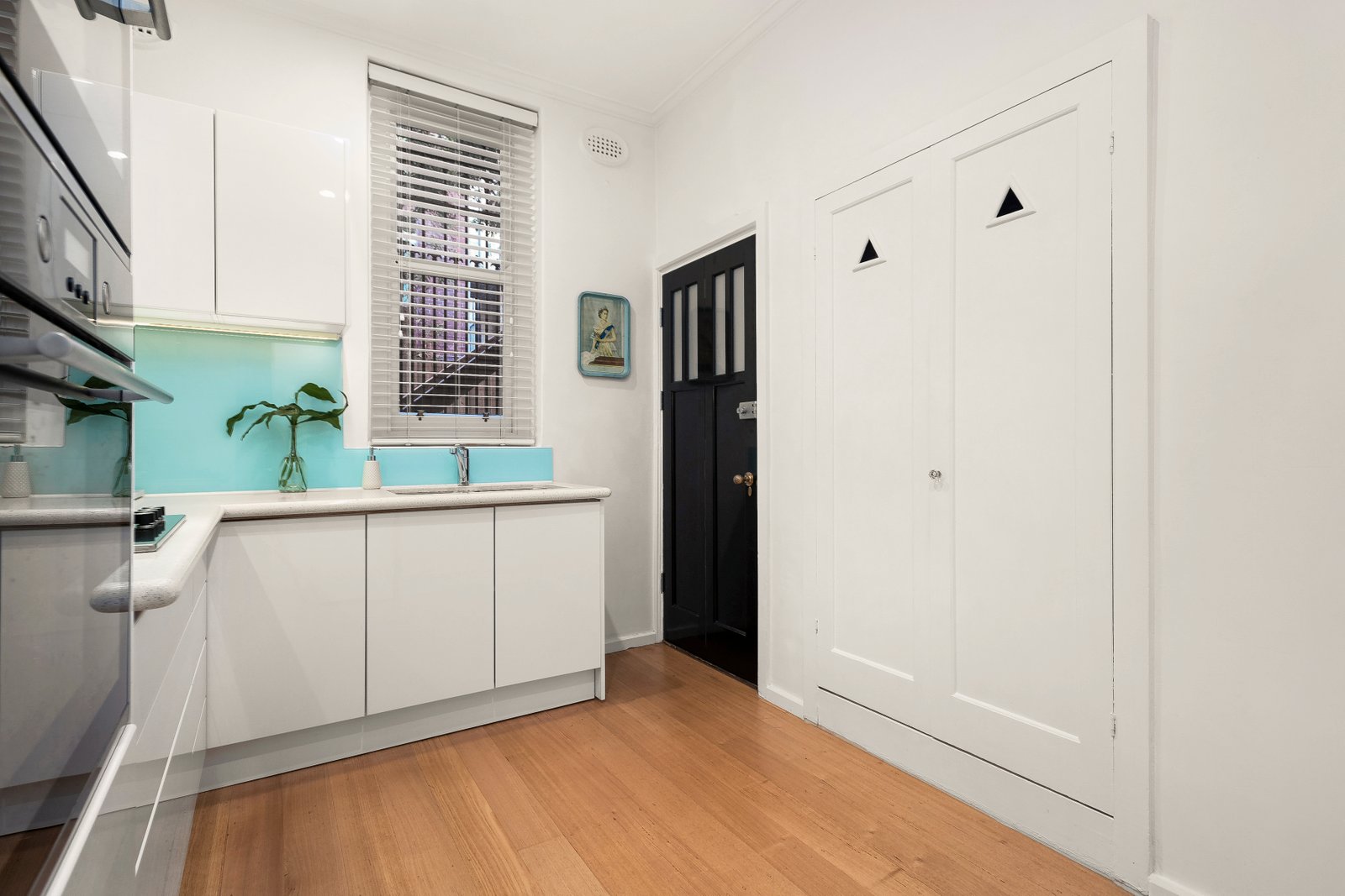 Hidden via the side lane in a secure entrance for only 3, this surprisingly spacious gem enjoys a wide entry foyer with amazing storage, a charming living and dining room with open fireplace; renovated stone kitchen (stainless steel appliances including a double oven and rear access), a superb bedroom (BIRs), a well-designed study with fitted desk and loft bed and a renovated period style bathroom/laundry (heated towel rail).