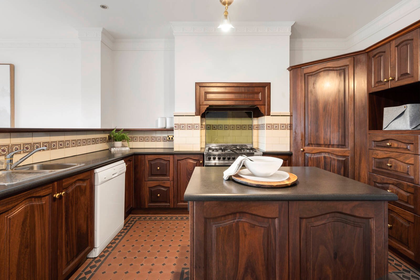 Preceded by its front courtyard entry, the majestic Hawthorn brick façade complete with tessellated tile and iron lacework verandas provides a rich introduction to the soaring rosette ceilings and original era beauty that lie within. Linked by an arched hall, two front rooms perfect as bedrooms or living domains with period style gas fireplaces (one with built in storage) are accompanied by a laundry with shower and powder room, family sized gourmet kitchen and bright north facing living areas that unfold to a sun filled courtyard and remote double garage flexible as a games/work from home office via rear ROW. Upstairs, a brand new bathroom serves a study with northern views and two additional bedrooms, one with bookcase storage, the main featuring extensive BIRs, original OFP and veranda access. Pale hardwood floors, electric storage heating, ceiling fans and multiple skylights add further appeal.