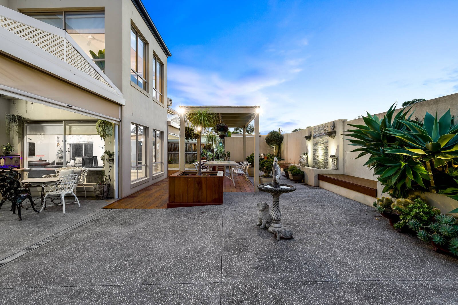 Glass sliding doors take you to a remarkable outdoor space, where paved entertainment spaces and privacy blend seamlessly, enclosed by a double-brick wall. Here an elegant gazebo takes centre stage while an undercover deck with cafe blinds overlooks a stunning water feature - an aspirational space to entertain family/friends. The area extends with an additional covered alfresco that wraps around the side of the home, including a fully equipped outdoor kitchenette with a range hood, gas cooktop and sink.