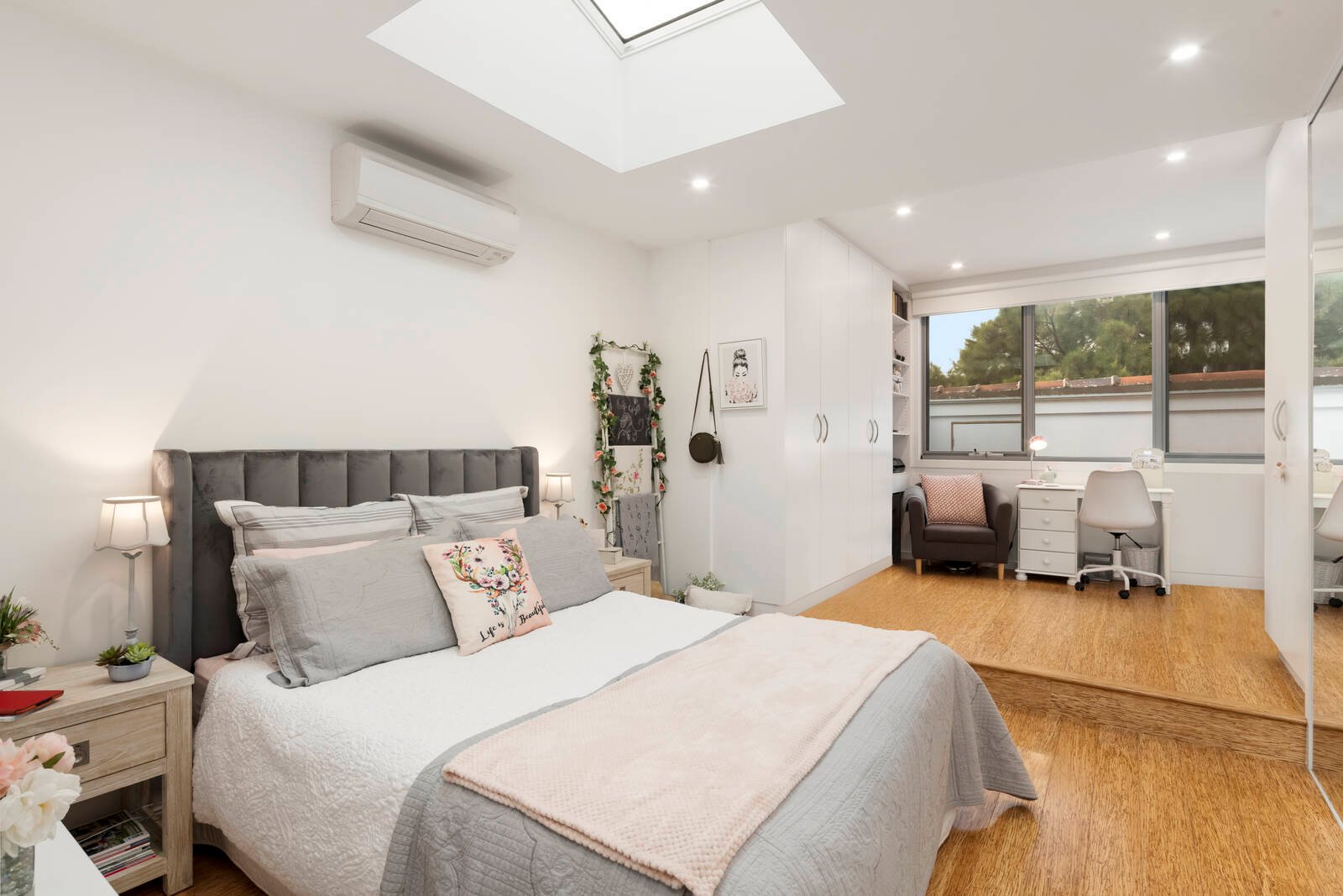 The master suite is complimented by its very own study area, featuring 3 large built-in robes, skylight perfectly positioned for stargazing followed by a contemporary ensuite designed with a wet room with a dual shower and spa bath.