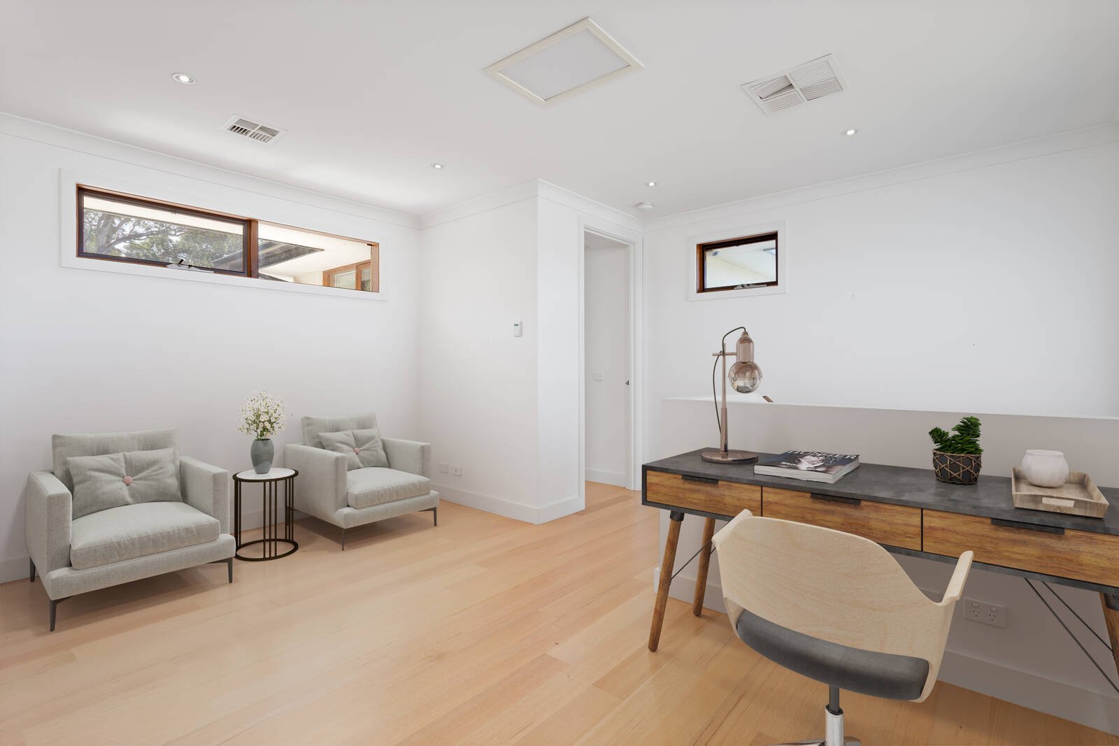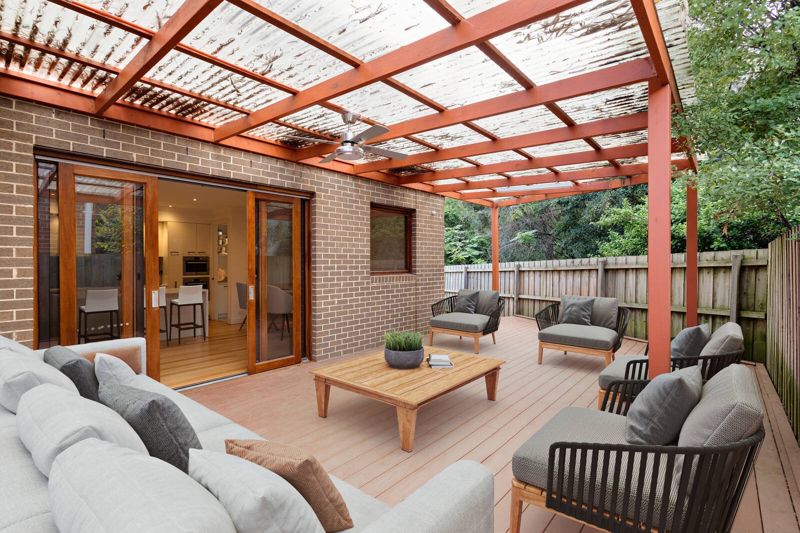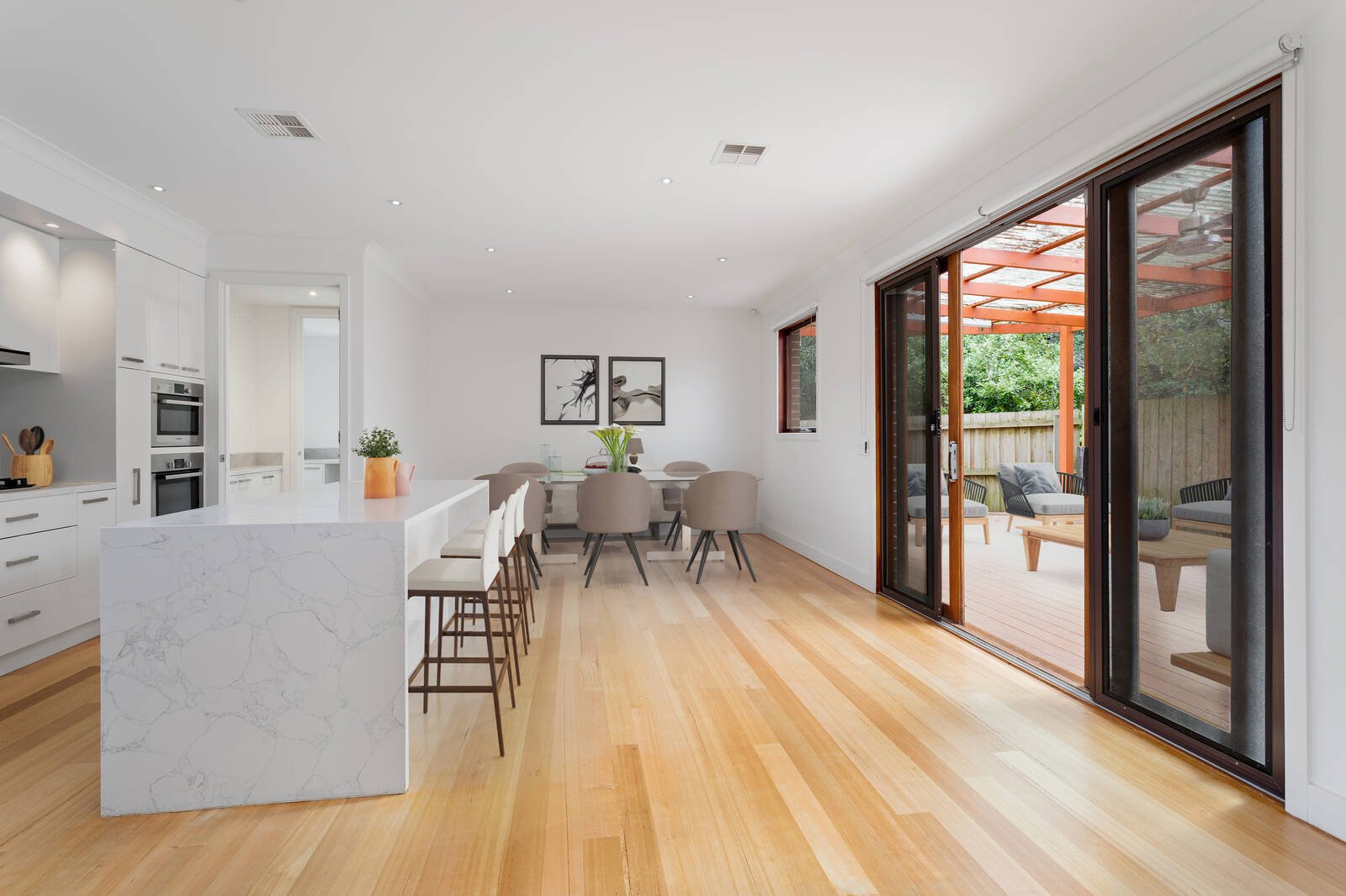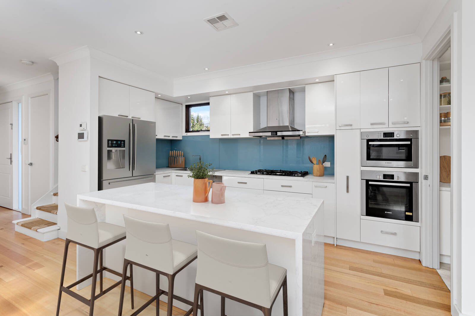 Displaying uncompromised quality and design, this contemporary townhouse promises a lifestyle of luxury and consummate ease backing on to the scenic sights of Gardiners Creek Trail. A modern palette paired with striking timber floors and beautiful northern light evokes an immediate sense of style throughout the spacious floorplan, with open-plan living/dining unfolding through double sliding doors to a huge covered deck – the ultimate setting to relax or entertain all year round in private seclusion. The gourmet kitchen is finished with clean lines and flaunts the island bench, sure to impress even the home chef! Lifestyle flexibility is confirmed by the convenience of ground and upper-level main bedrooms (each with a chic ensuite), 2 further robed bedrooms, luxe fully tiled bathroom and a separately zoned retreat – ideal for teenagers to enjoy their own space. Luxuriously appointed with a powder room and double garage. Appreciate a leafy setting within a short walk to Alamein station, the Anniversary Trail, the culinary delights and shops on High Street and Ashburton Primary.