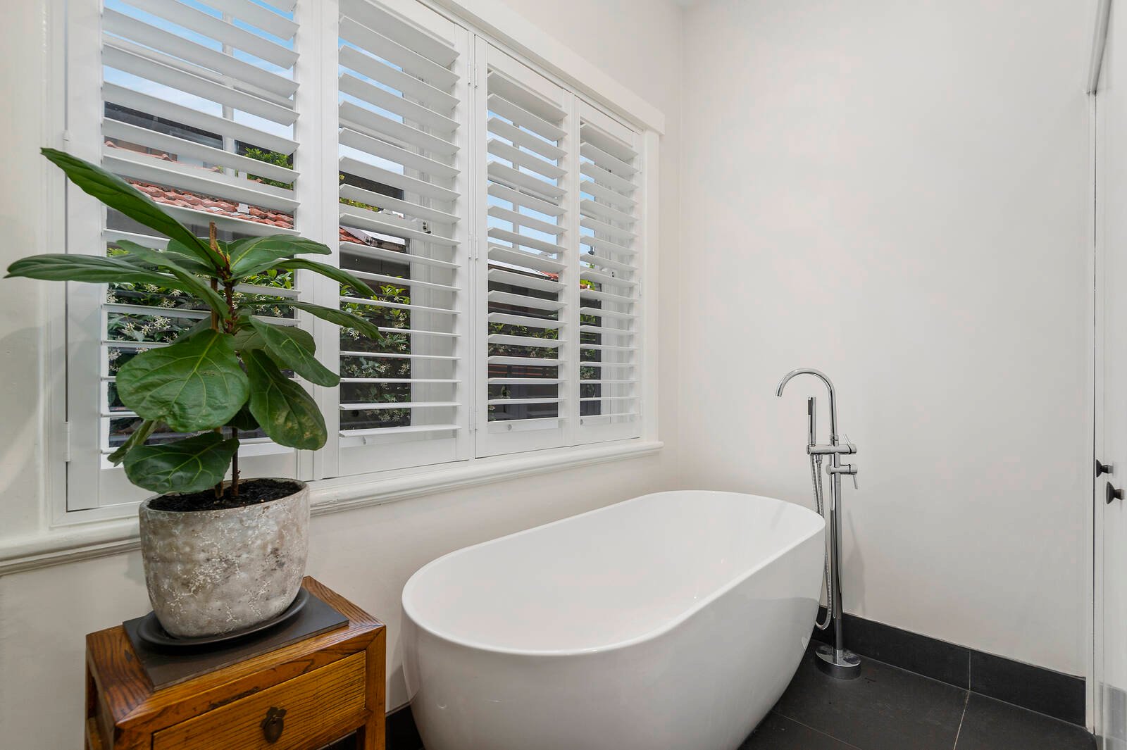 Beyond the traditional three bedroom layout with high ceilings and lovely polished boards, the bathroom is luxuriously appointed with a twin vanity and a deep soaker tub. Warmly welcoming with a gas log fire and open-plan allure, the dining and living room flaunts a sparkling kitchen with mirrored splashbacks. Push back the wall of bi-folds and invite guests to relax out on the deck and in the easy-care garden.