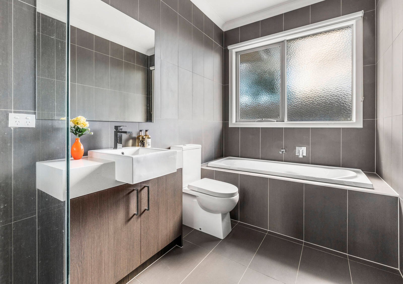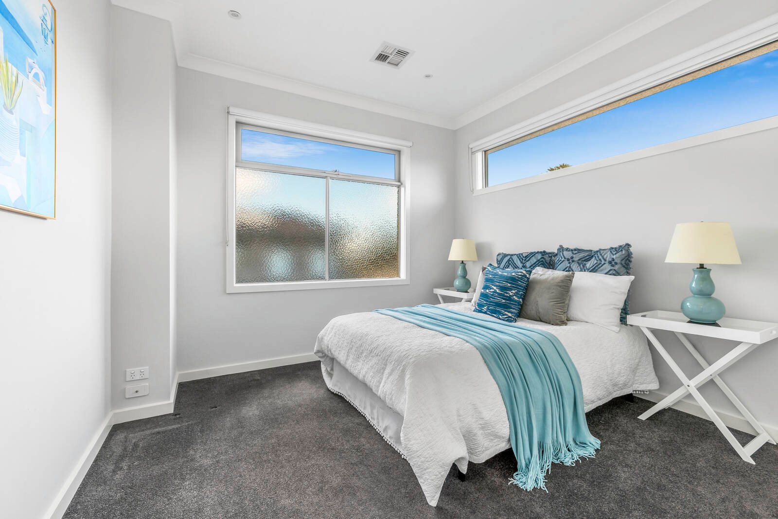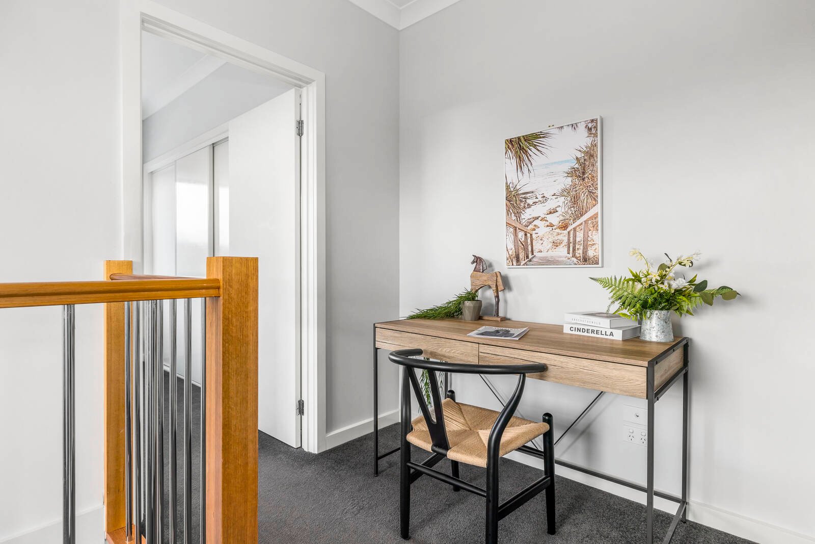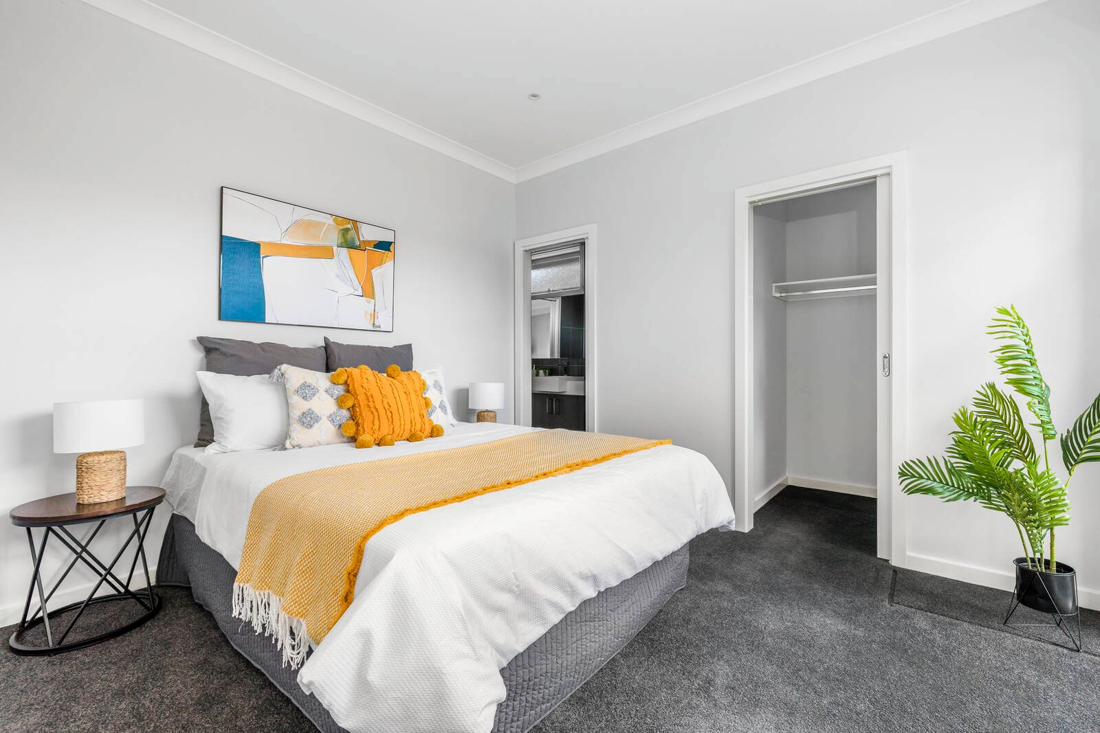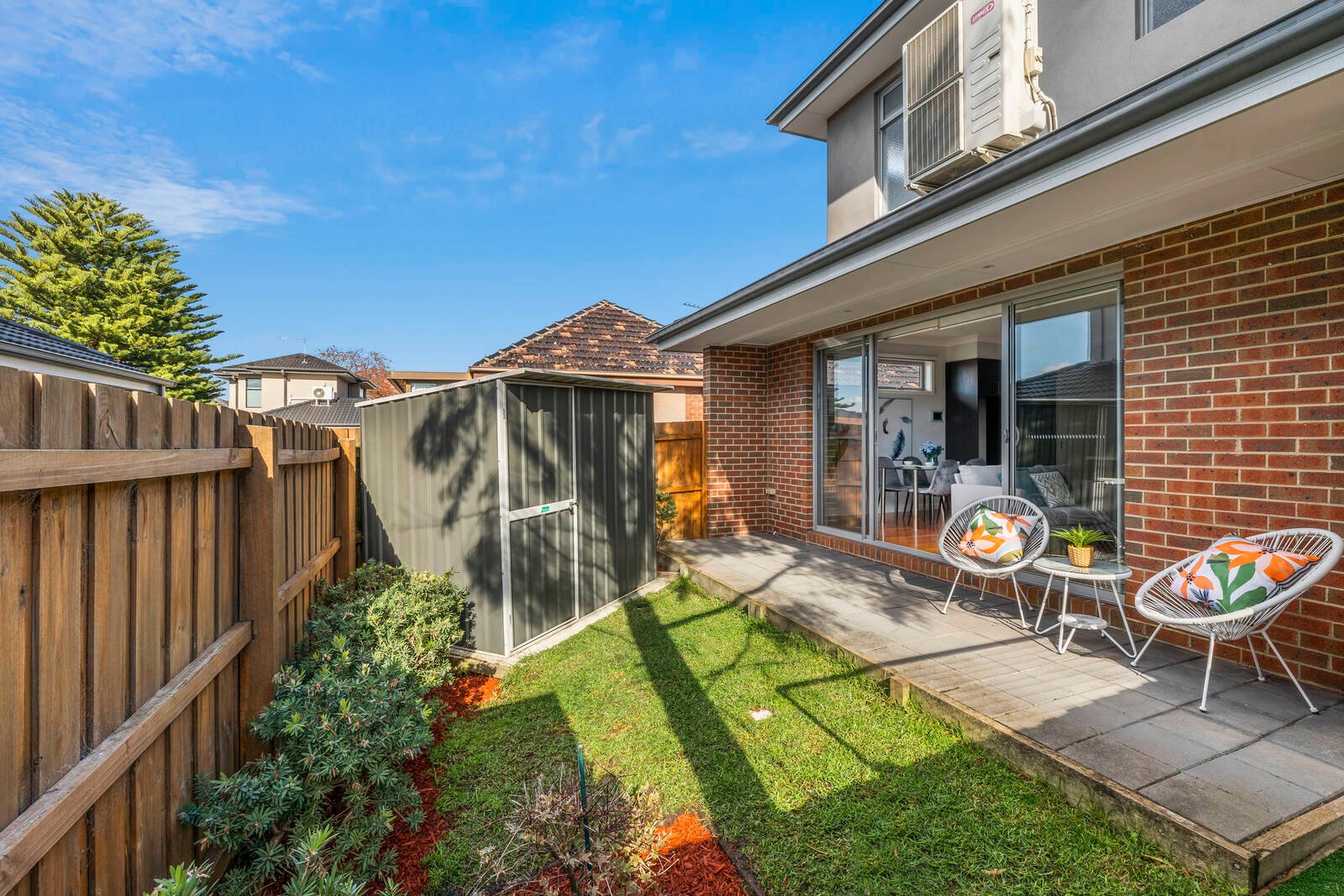 Privileged by a prominent streetfront position, one of only 3, this contemporary townhouse is defined by its easy-care nature and flawless modern class. Timber floors and beautiful natural light set the welcoming tone for quality interiors, where open-plan living/dining merges effortlessly with a gourmet kitchen featuring stainless steel appliances and stone island bench. Convenient living is further enhanced by a ground floor main bedroom fitted with a WIR and 2-way twin ensuite, plus 2 additional robed good-sized bedrooms on the upper-level and a sleek fully-tiled bathroom. This appealing low-maintenance sanctuary is complete with central ducted heating/AC, solar hot water, video intercom, system, study nook, covered entertaining terrace and courtyard, shed, single garage and a further car space on title. It is at a prime location with Huntingdale station within walking distance and a reserve park just a short walk down the street, minutes to schools, Monash university, golf clubs, parks, buses, Chadstone shopping centre and Clayton/Oakleigh’s café and shopping district.