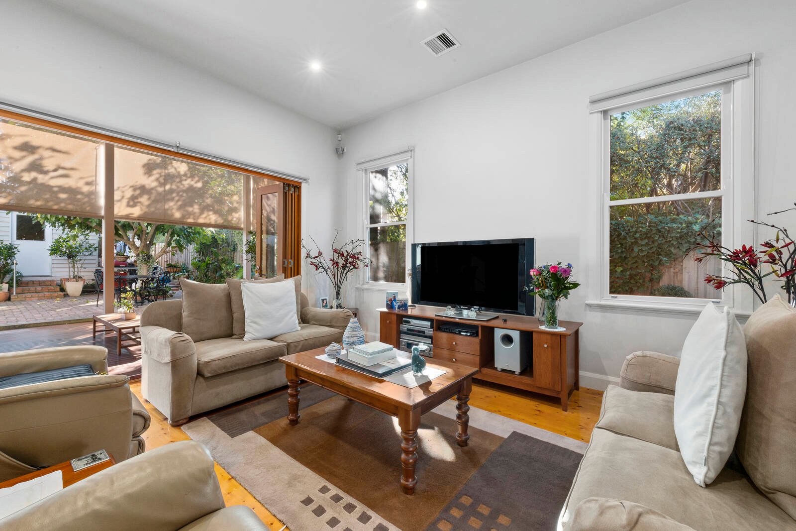 The charming Federation façade sits behind lush established gardens forming and enchanting introduction to the home. On entry, a long central hallway, high ceilings, polished timber floors, and ornate timber fretwork showcase the original features of the home. Comprising four generous bedrooms, the master includes walk-in robes and modern ensuite, two additional bedrooms include built-in robes, with a fourth room providing a versatile space featuring an original fireplace that can also be utilised as a second living. A central family bathroom continues in the quality theme of the home with modern fittings and fixtures.