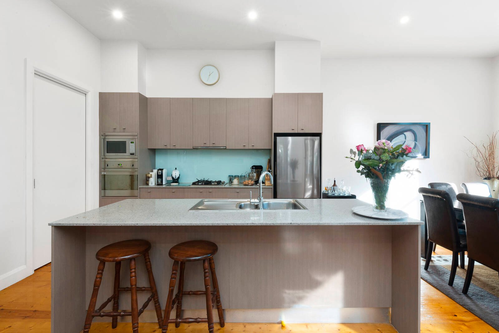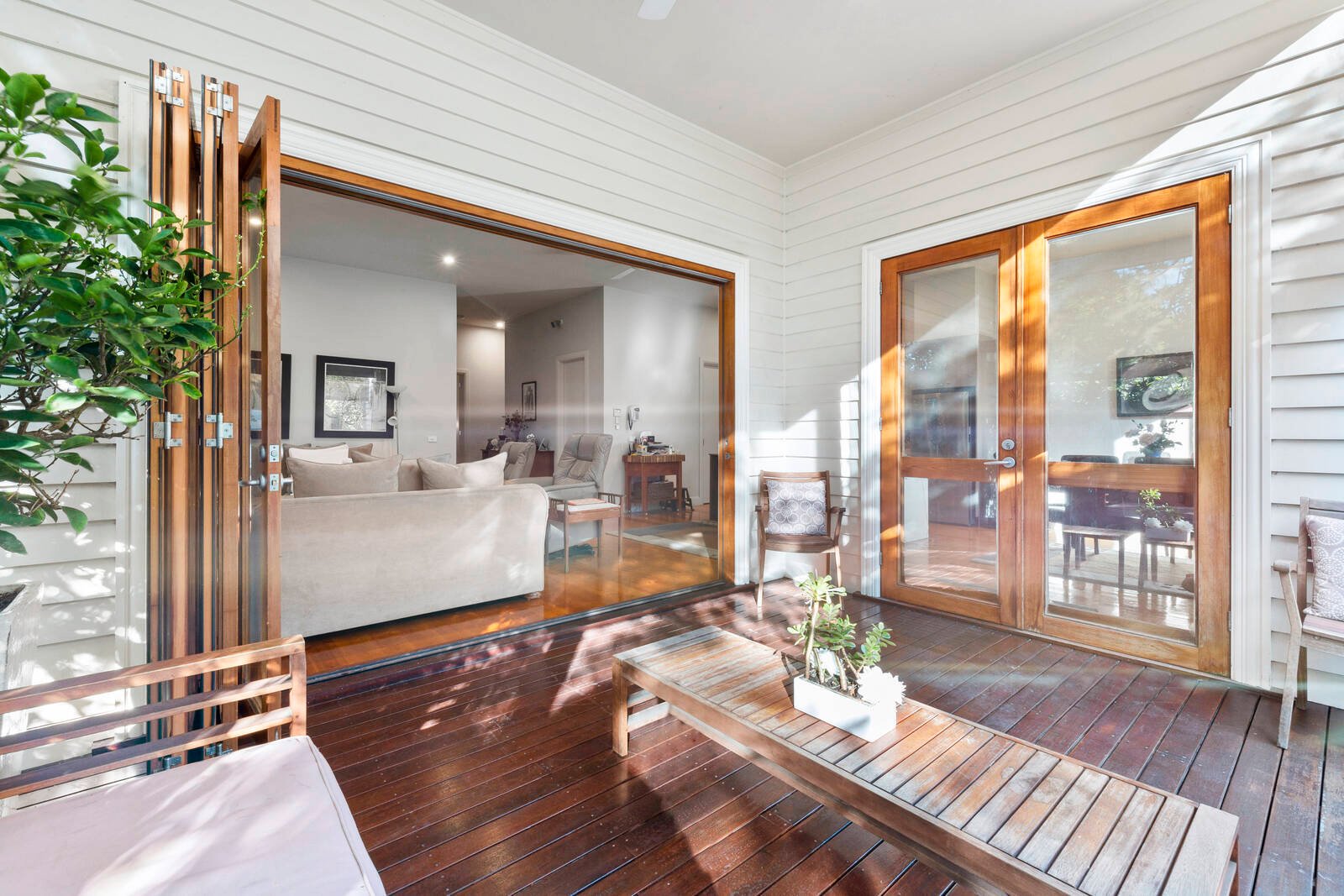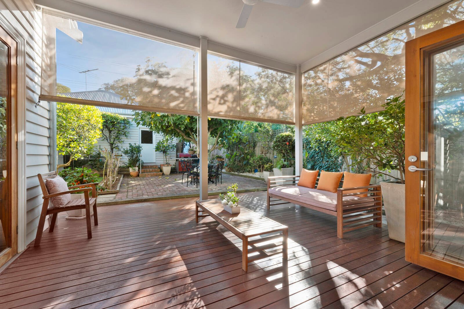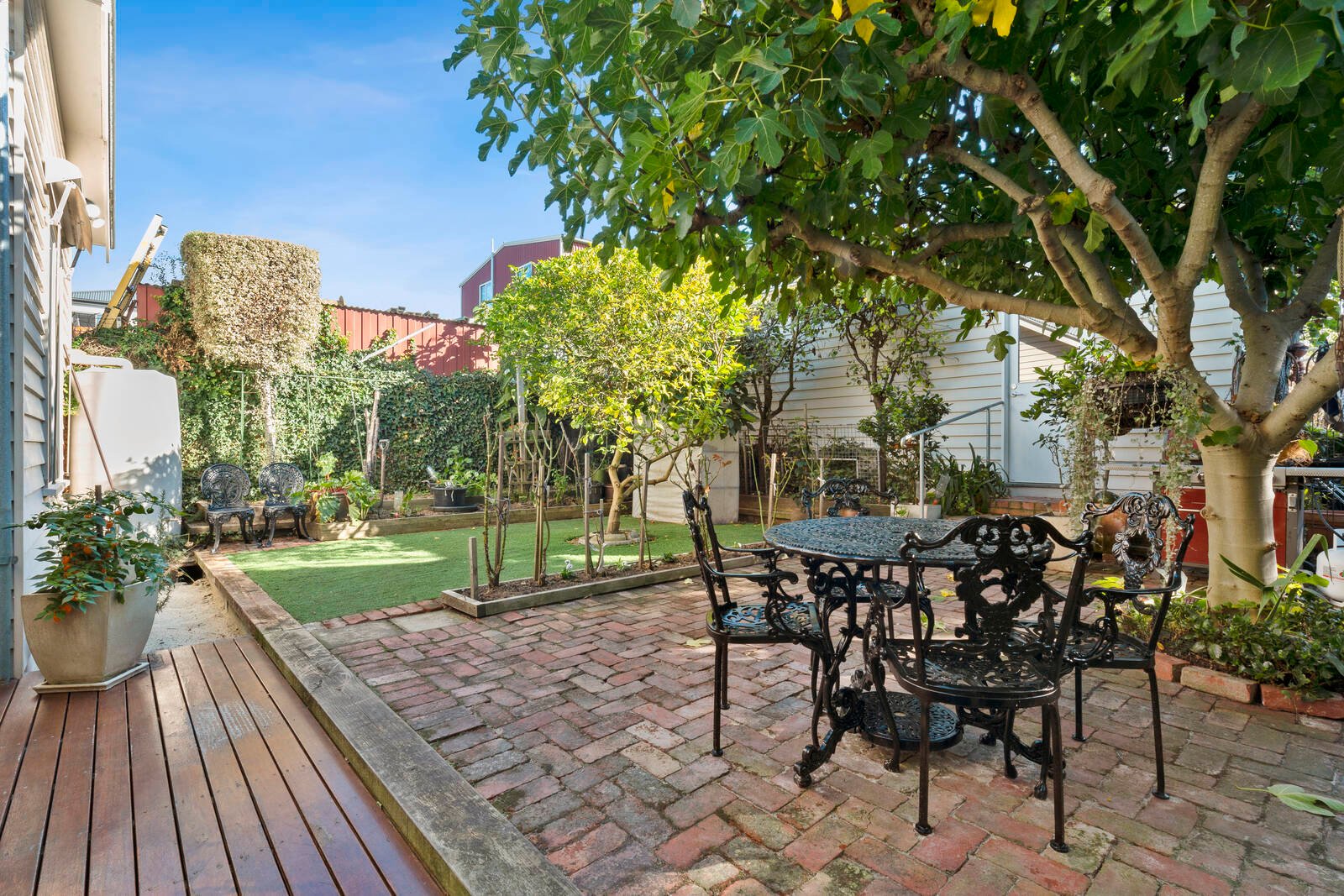 Outdoors, the private deck and courtyard is surrounded by lush greenery offering a secluded oasis to enjoy the sun or shelter all year round. Rear access to a double remote garage provides for secure and convenient access with built-in work bench and sink facilities.